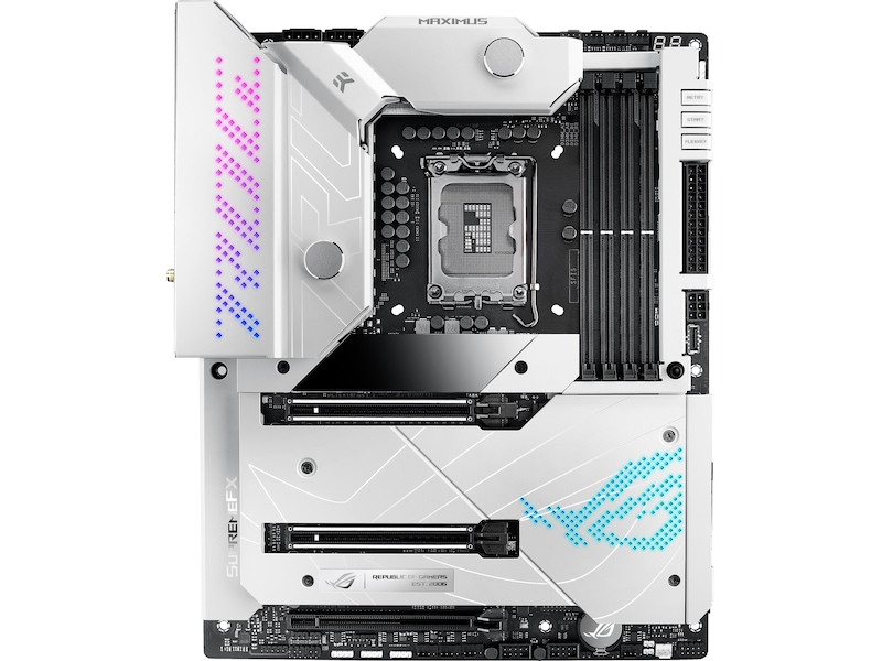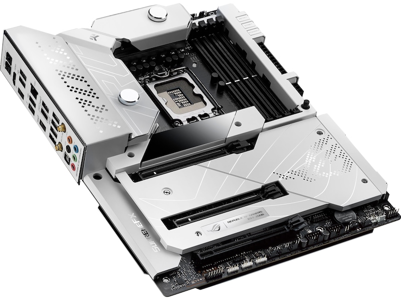 • Optimized Thermal Design: Enlarged VRM heatsinks with EK CrossChill III solution, high-conductivity thermal pads, triple M.2 heatsinks and two M.2 backplates, and ROG Water-Cooling Zone