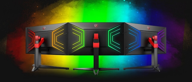 Maximal nedsänkning: våra AOC-skärmar har speciell belysning på baksidan av enheten som lyser upp din spelinstallation i olika färger. Välj vilken färg du vill, synkronisera den med dina andra AOC-enheter och testa de olika glödande mönstren.