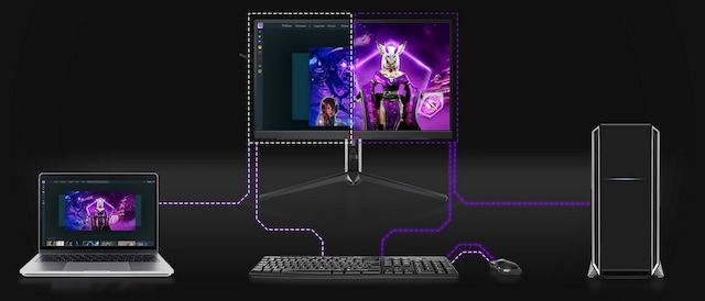 Picture by Picture är en funktion som låter dig använda flera källor (t.ex. från din bärbara dator och stationära dator) samtidigt och visa dem på samma skärm. Detta ger dig mer kontroll och ökar din effektivitet både när du streamar, arbetar och spelar.