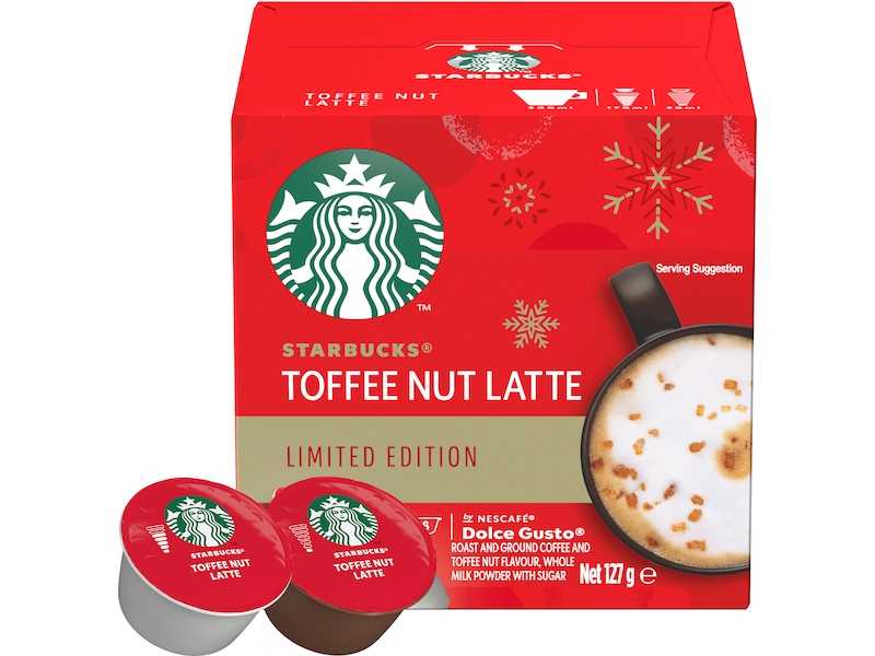 Eftersom det är jul har Starbucks och NESCAFÉ utvecklat en härlig och unik blandning: Starbucks® Toffee Nut Latte begränsad upplaga av NESCAFÉ DOLCE GUSTO®. Inspirerad av deras ikoniska Toffee Nut Latte från kaféer, stoltserar denna julfavorit med 100 % högkvalitativa Arabicabönor, mjölk, smaken av söt karamell och rostade nötter – toppat med ett lager mjukt skum.