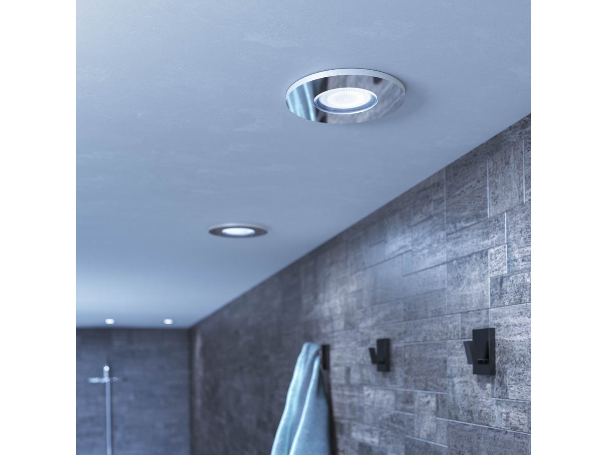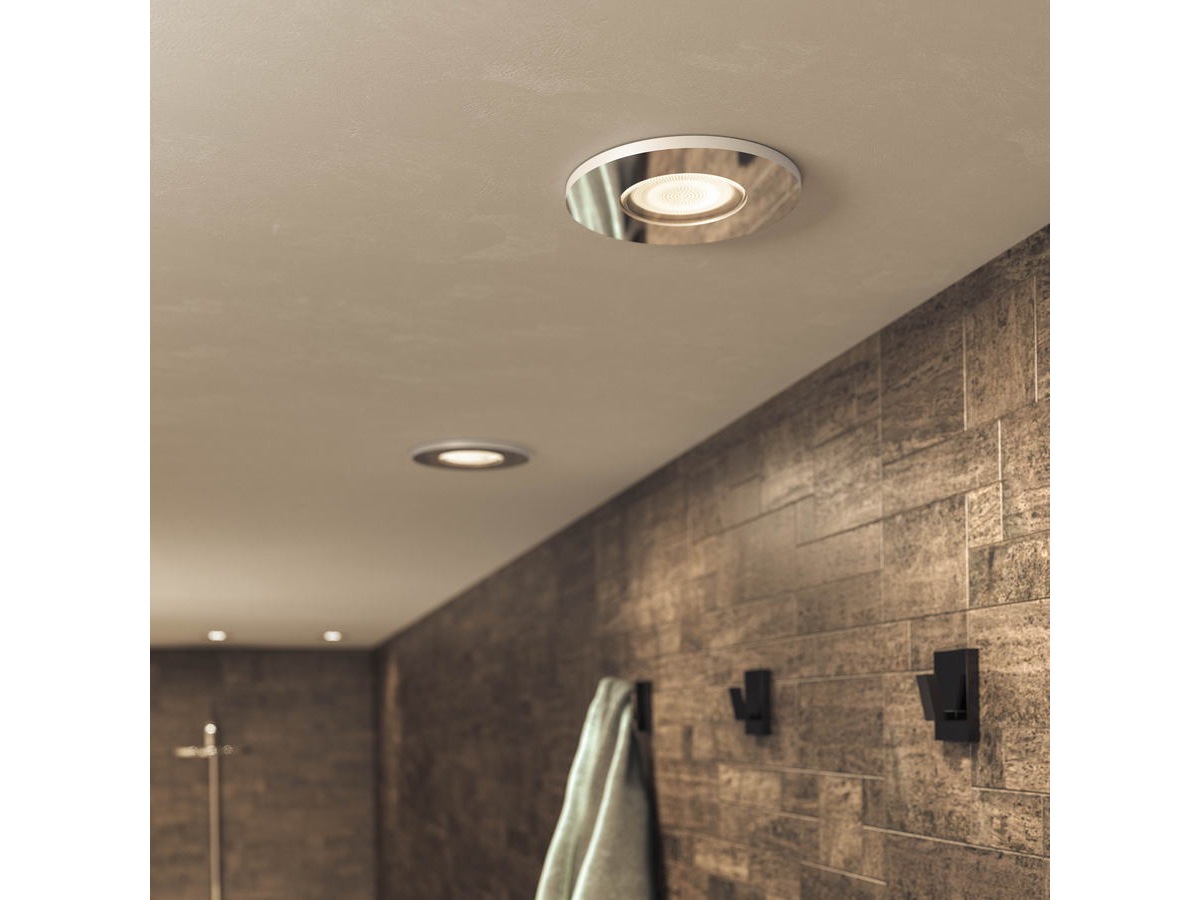 Denna infällda spotlight har en väldigt låg profil mot taket och ger ditt badrum ett fantastisk modernt utseende. Perfekt för alla som vill ha en lite mer subtil belysning i deras badrum. Kommer med en inkluderad White ambiance GU10-ljuskälla som kan ändra ljuset från en energigivande kall nyans av vitt ljus till en mer varm och avslappnande nyans av gult ljus.