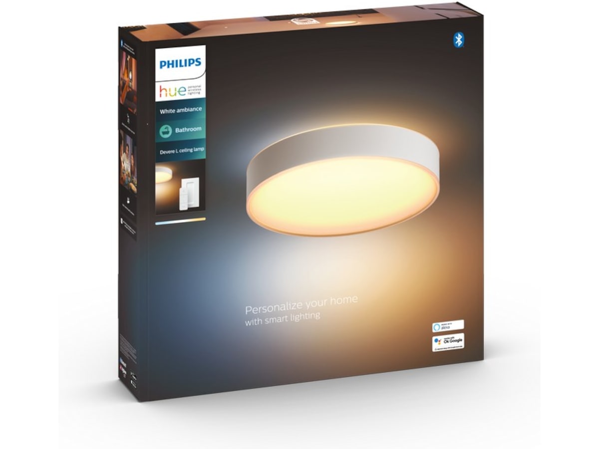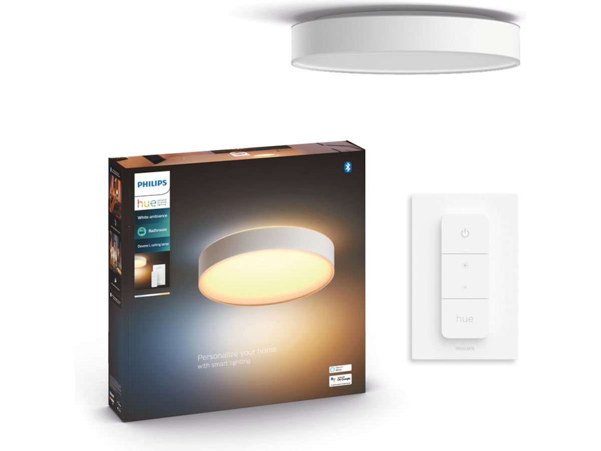 Philips Hue Devere är en unik och modern taklampa, specifikt designad för att tillåta dig att skapa den perfekta atmosfären till ditt badrum.