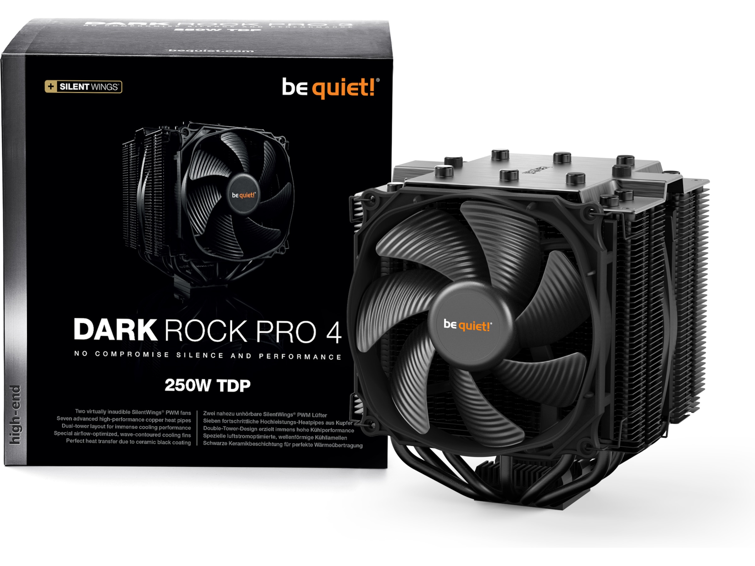 Dark Rock Pro 4 har en enorm kylningsprestanda på 250 W TDP och är praktiskt taget ohörbar. Utmärkt för överklockade system och krävande arbetsstationer.