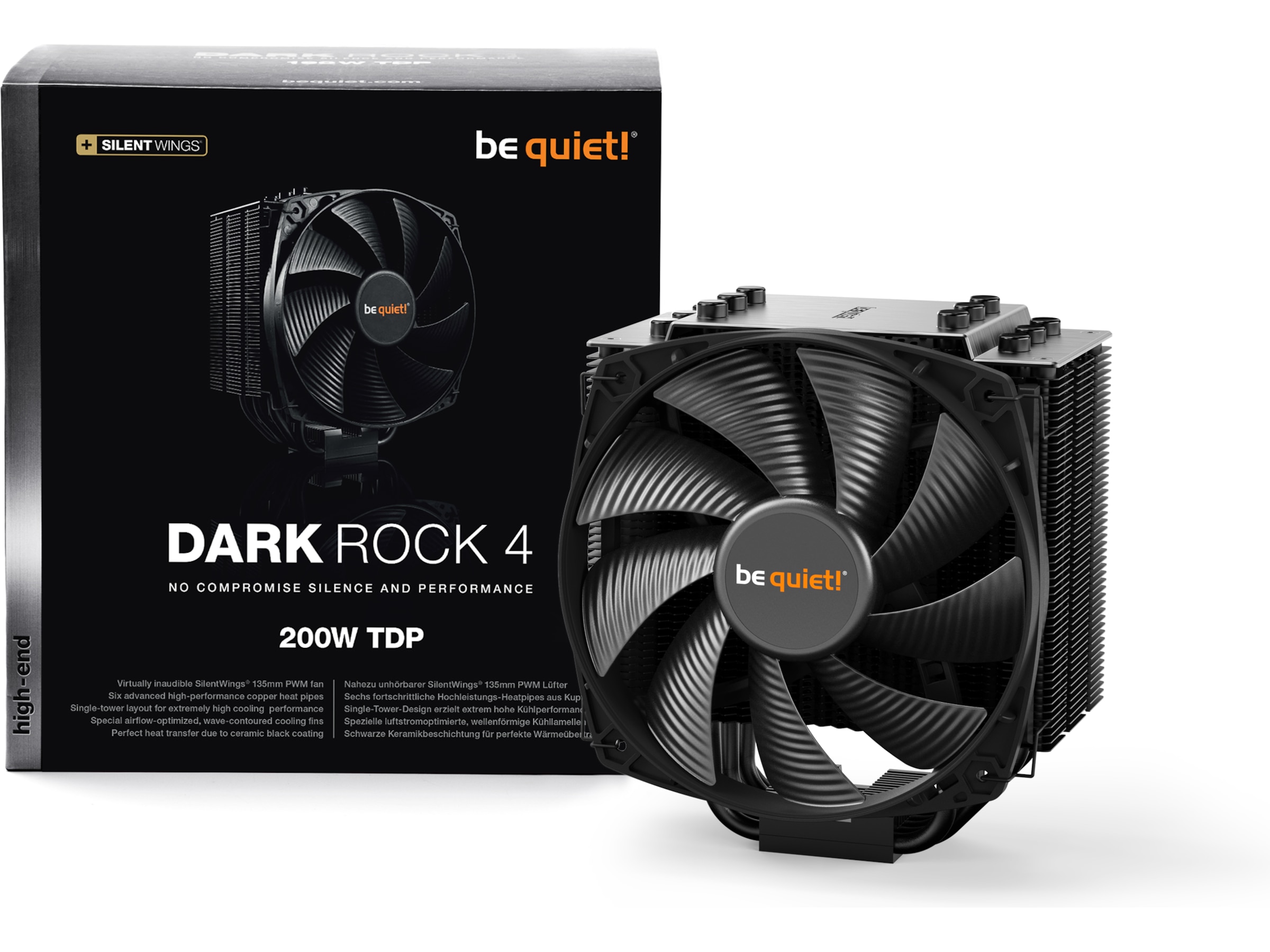 Ingen kompromiss i tystnad och prestanda för överklockade system och krävande grafikapplikationer! Dark Rock 4 har ett imponerande värde på 200 W TDP och uppnår låga temperaturer även under perioder med hög CPU-prestanda.