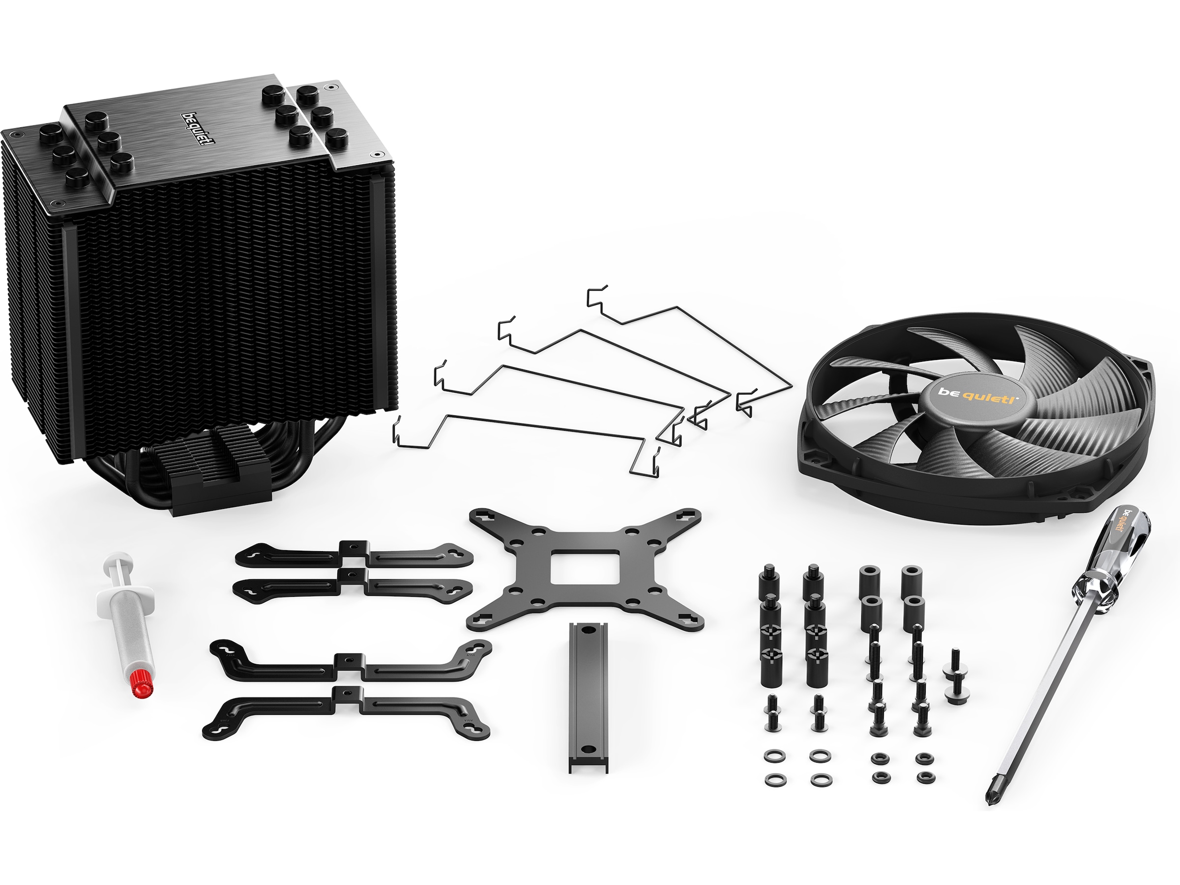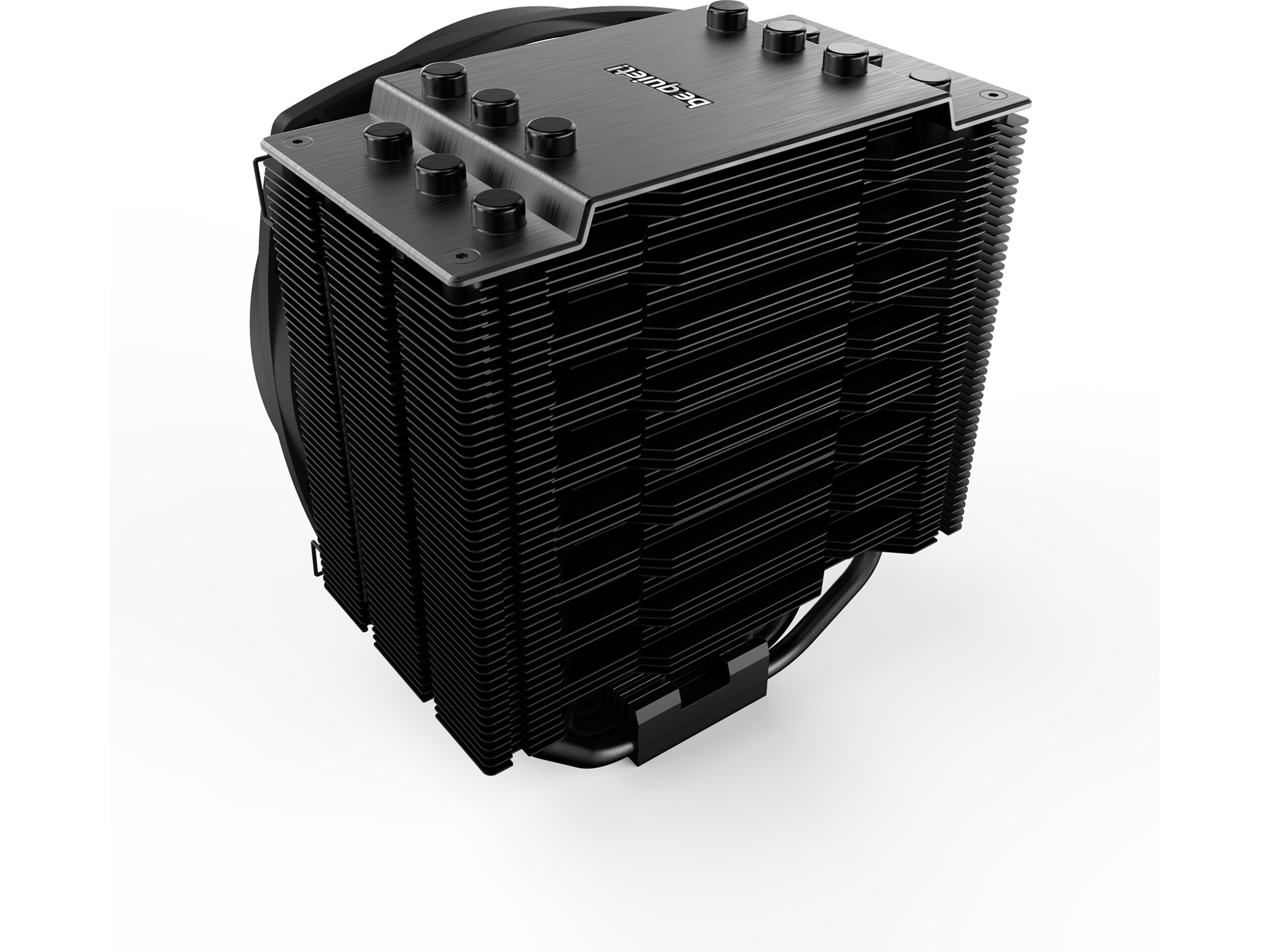 Monteringssatsen för Dark Rock Pro 4-kylaren är helt svart och passar perfekt till kylarens svarta design. Du kan bekvämt installera kylaren på moderkortet ovanifrån. Topplocket i borstad aluminium med sin diamantslipade finish ger en touch av elegans till denna exklusiva kylare.