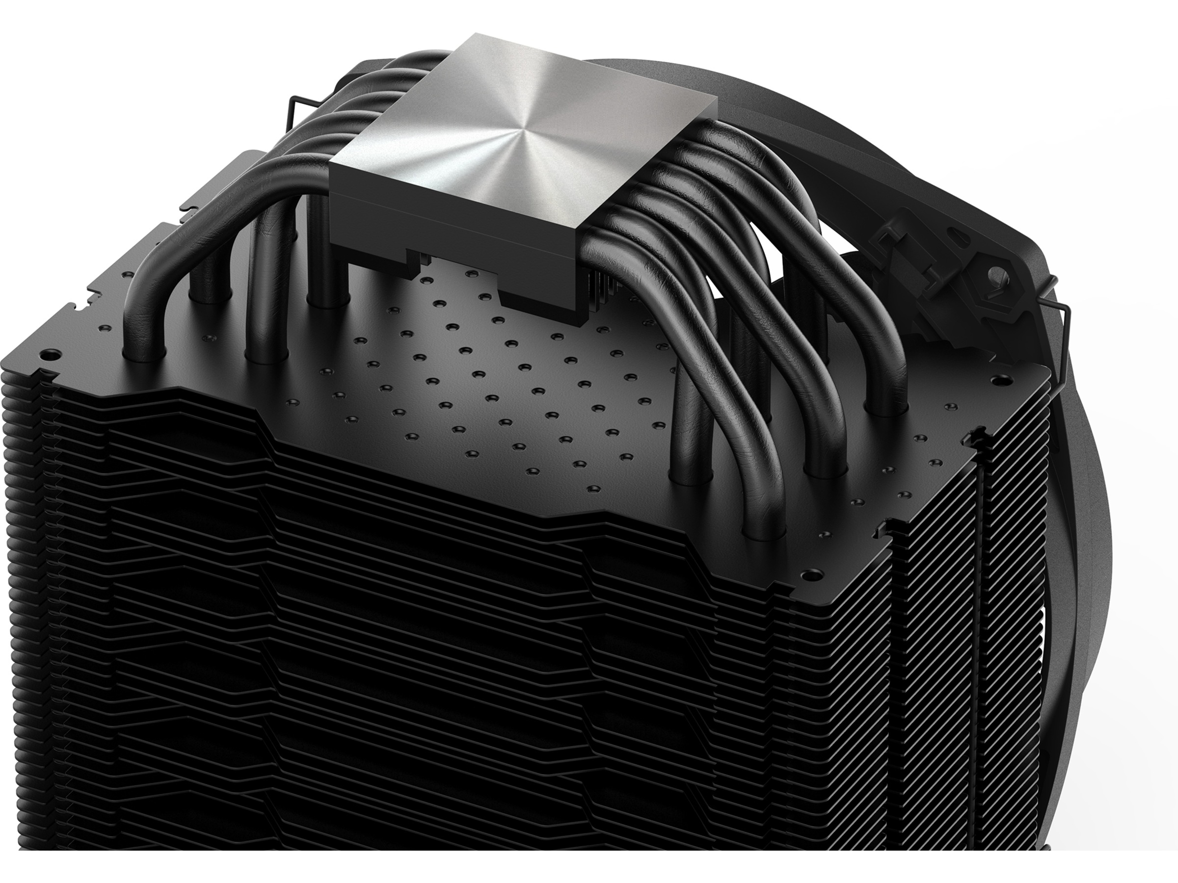 Dark Rock 4 är utrustad med sex avancerade 6 mm kopparvärmerör som maximerar värmeledningsförmågan. Luftflödesoptimerade, vågformade kylflänsar med små prickar på sina ytor ökar luftcirkulationen. Den speciella svarta beläggningen med keramiska partiklar möjliggör en perfekt värmeöverföring.
