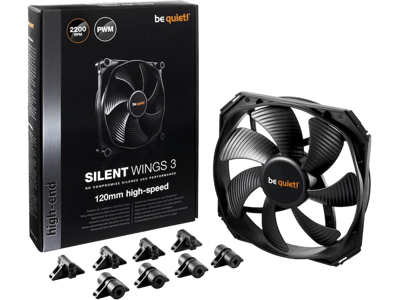Var tyst! Silent Wings 3 120 mm PWM high-speed står för toppmodern teknik och praktiskt taget ohörbar drift. Det extremt höga lufttrycket gör den till ett perfekt val för kraftfulla vatten- och luftkylda system.