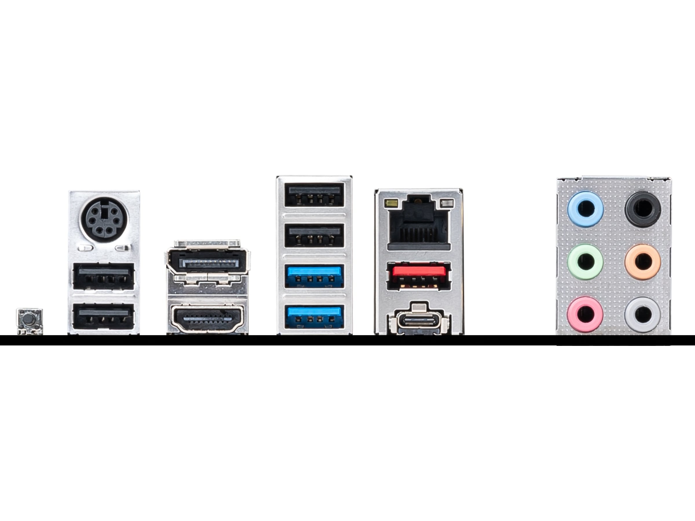 1 x ljudutgång (bakre) - mini-jack, 1 x ljudingång - mini-jack, 1 x HDMI, 1 x USB-C Gen2x2, 1 x DisplayPort, 1 x ljudutgång - mini-jack, 1 x mikrofon - mini-jack, 1 x PS/2-tangentbord/mus, 4 x USB 2.0, 1 x USB 3.2 Gen 2, 1 x ljudutgång (center/subwoofer) - mini-jack, 2 x USB 3.2 Gen 1, 1 x ljudingång (sidosurround) - mini-jack, 1 x LAN (2.5Gigabit Ethernet)
