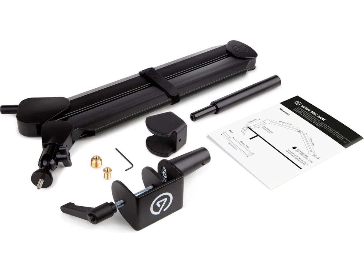 Kompatibel med 1/4, 3/8 och 5/8-tums mikrofonfästen fungerar Wave Mic Arm fungerar direkt ur lådan med mikrofoner som väger mellan 250 g/0,55 lbs och 1 000 g/2,2 lbs.