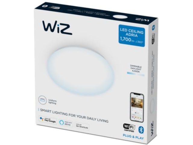 WiZ Adria är den smarta taklampan som lyser upp ditt hem med ett mysigt, behagligt vitt ljus. Den moderna, enkla och runda designen gör Adria till en naturlig del av din inredning och ser till att du får en bra, jämn och behaglig belysning.