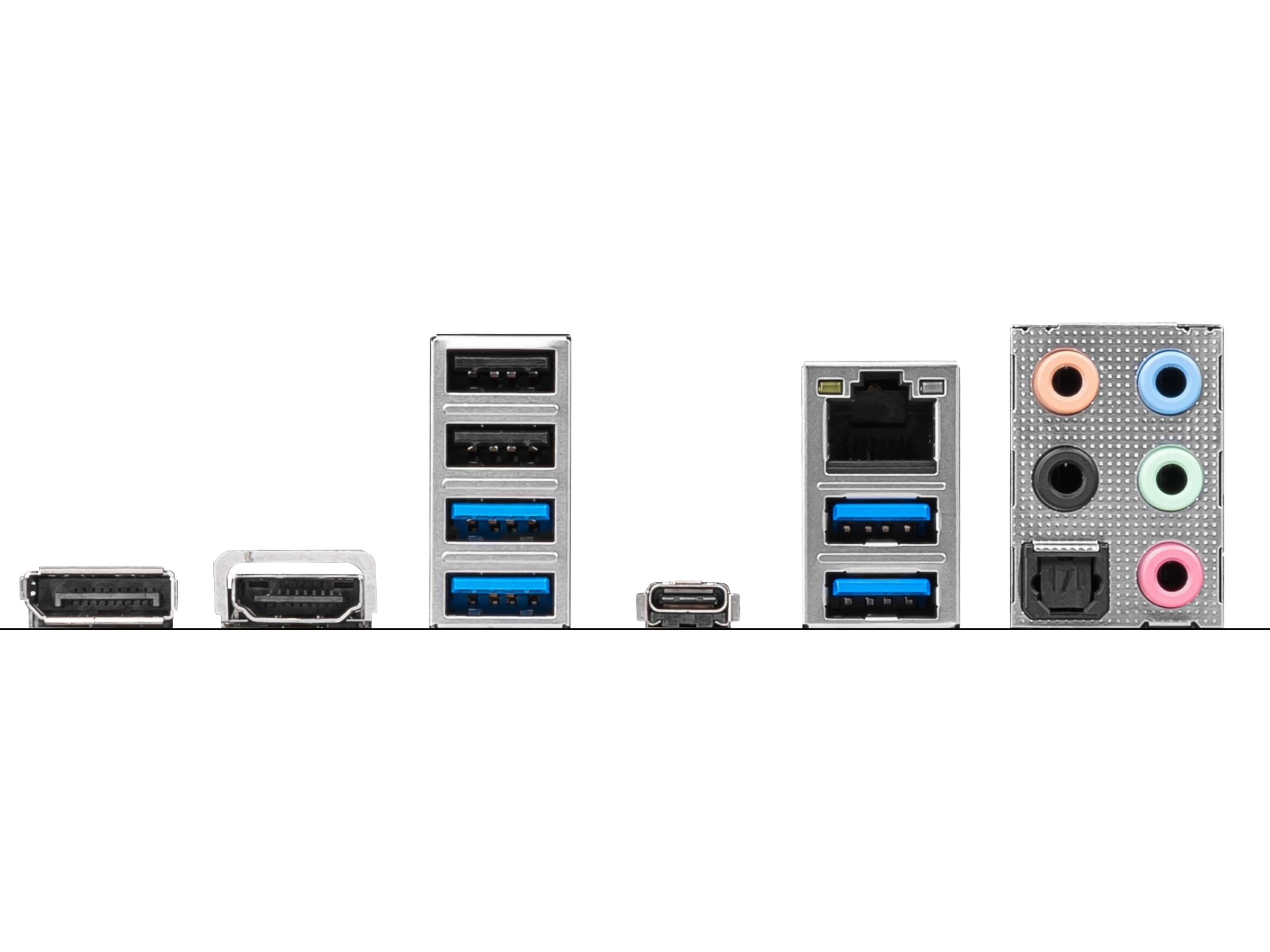 1 x HDMI, 1 x DisplayPort, 1 x ljudutgång - mini-jack, 1 x ljudutgång (center/subwoofer) - mini-jack, 2 x USB 2.0, 4 x USB 3.2 Gen 1, 1 x USB-C Gen2x2, 1 x ljudutgång (bakre) - mini-jack, 1 x TOSLINK, 1 x ljudingång - mini-jack, 1 x LAN (2.5Gigabit Ethernet), 1 x mikrofon - mini-jack |