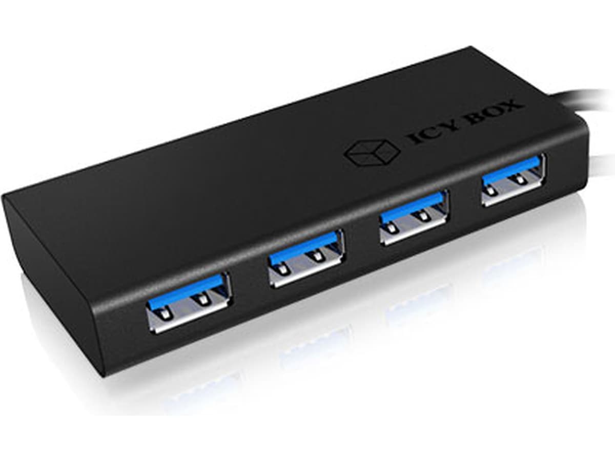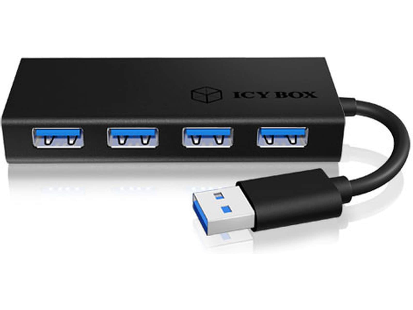 Enkel och effektiv 4-ports USB 3.0-hubb i svart aluminiumhölje