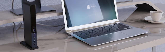 Tack vare HDMI-videogränssnitten kan ytterligare två skärmar anslutas, båda i Full HD-kvalitet. De många tillgängliga USB 2.0- och USB 3.0-portarna ser till att du aldrig behöver kompensera en enhet framför den andra.