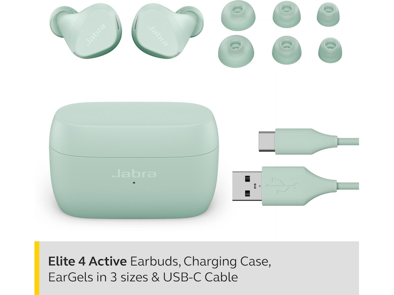 Du behöver öronsnäckor som hänger med i ditt träningstempo. Jabra Elite 4 Active är särskilt utformade för att sitta bekvämt. De är vattentäta och svettsäkra, ergonomiska och otroligt hållbara. Men det är inte allt. Elite 4 Active är avsedda att höja din träningsupplevelse. Den aktiva bullerdämpningen (ANC) och den inställbara equalizern, HearThrough-tekniken och omedelbara åtkomsten till Spotify med Tap-uppspelning* gör träningen till ett nöje.