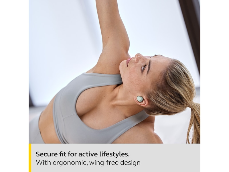 Den ergonomiska designen utan vingar gör Elite 4 Active bekväma och diskreta – perfekt för en aktiv livsstil. Du får alla fördelar med sportöronsnäckor i en design som passar ditt liv perfekt. Både när du är på väg ut eller hem.