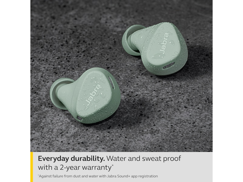 Med säker passform för aktivitet och IP57-klassat vatten- och svettskydd pallar de här snäckorna all slags träning. 2 års garanti** när du registrerat dem i appen Jabra Sound+. Så du behöver aldrig oroa dig för att dina träningskompisar ska lägga ner. Aktiv bullerdämpning (ANC) blockerar störande ljud med en knapptryckning. Låt dig uppslukas av musiken när du vill. ANC hjälper dig med allt från att ignorera ljudsystemet på gymmet till att filtrera bort omgivningsljud ute. Så att du kan fokusera.