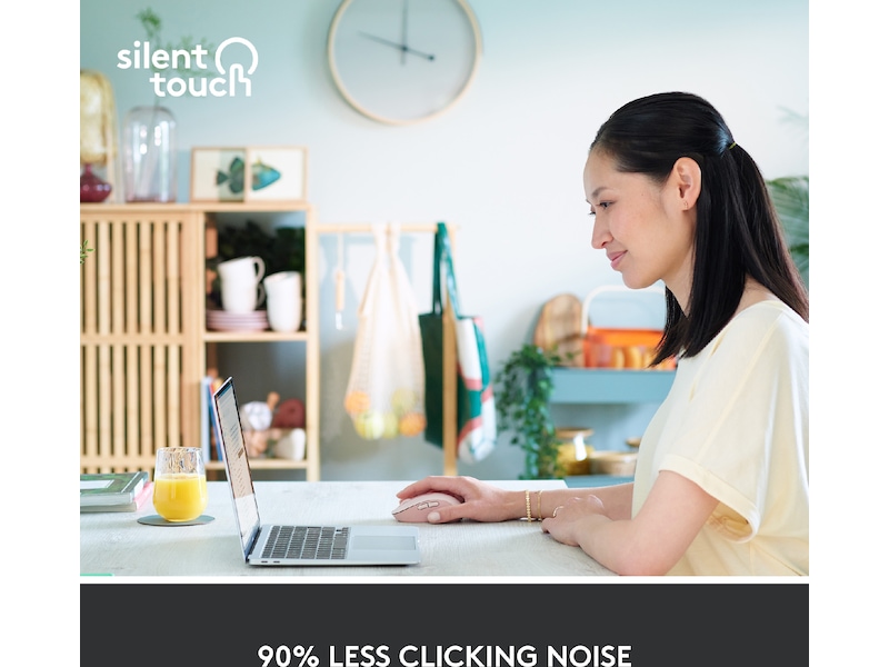 Njut av 90 % tystare klickljud och därmed större fokus tack vare SilentTouch, en exklusiv teknik från Logitech som reducerar mängden störande klick- och skrivljud och skapar en bättre och tystare miljö för dig och andra i omgivningen.