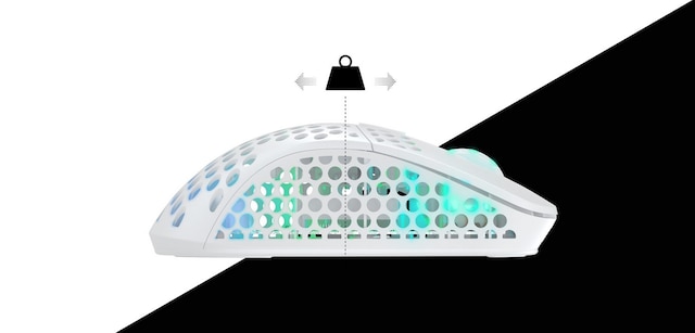 Trådlös men ultralätt. Med en konstruktion som låter dig ändra musens viktfördelning. Eftersom tyngdpunkten flyttar sig beroende på hur du håller musen, har vi gjort det möjligt att justera den efter ditt grepp. Flytta batteriet framåt eller bakåt, och upplev en perfekt balanserad mus.