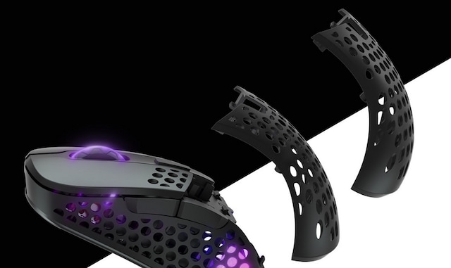 Behåll M4:ans ursprungliga form eller byt ut den bakre delen av skalet för att göra musen större. Två utbytbara skal ingår, så att du kan anpassa musens storlek efter ditt grepp.