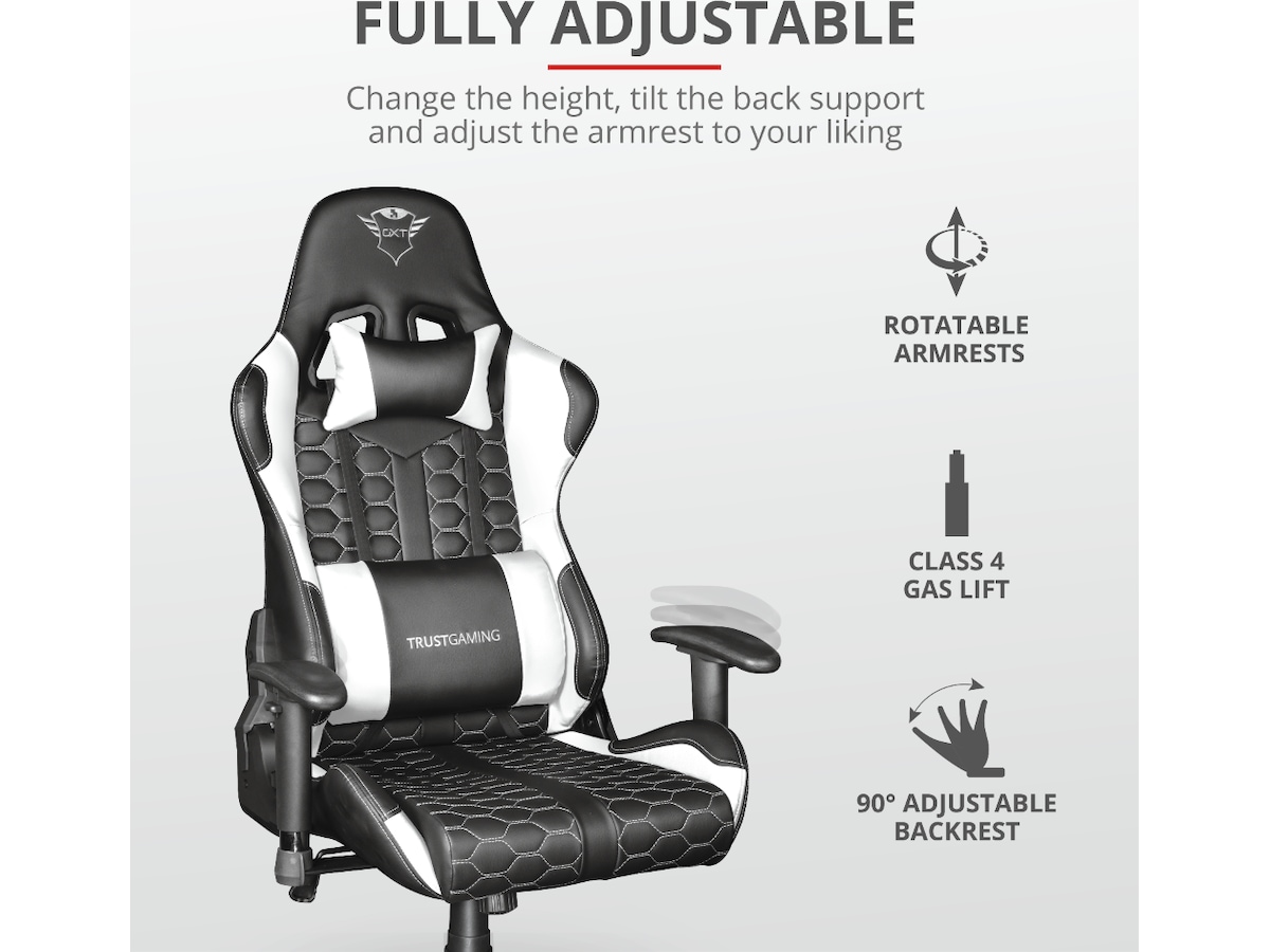 Spelstolen kan roteras i 360 grader och är utrustad med en klass 4-gashiss, som gör det möjligt att ställa in stolens höjd mellan 47 och 54,5 cm. Denna förstklassiga gashiss är hållbar och pålitlig, medan den starka basramen av metall stödjer vikt på upp till 150 kg. Ryggstödet kan justeras mellan 90-180 grader, vilket innebär att du även kan fälla ner ryggstödet för en stunds välförtjänt vila efter en fantastisk seger!