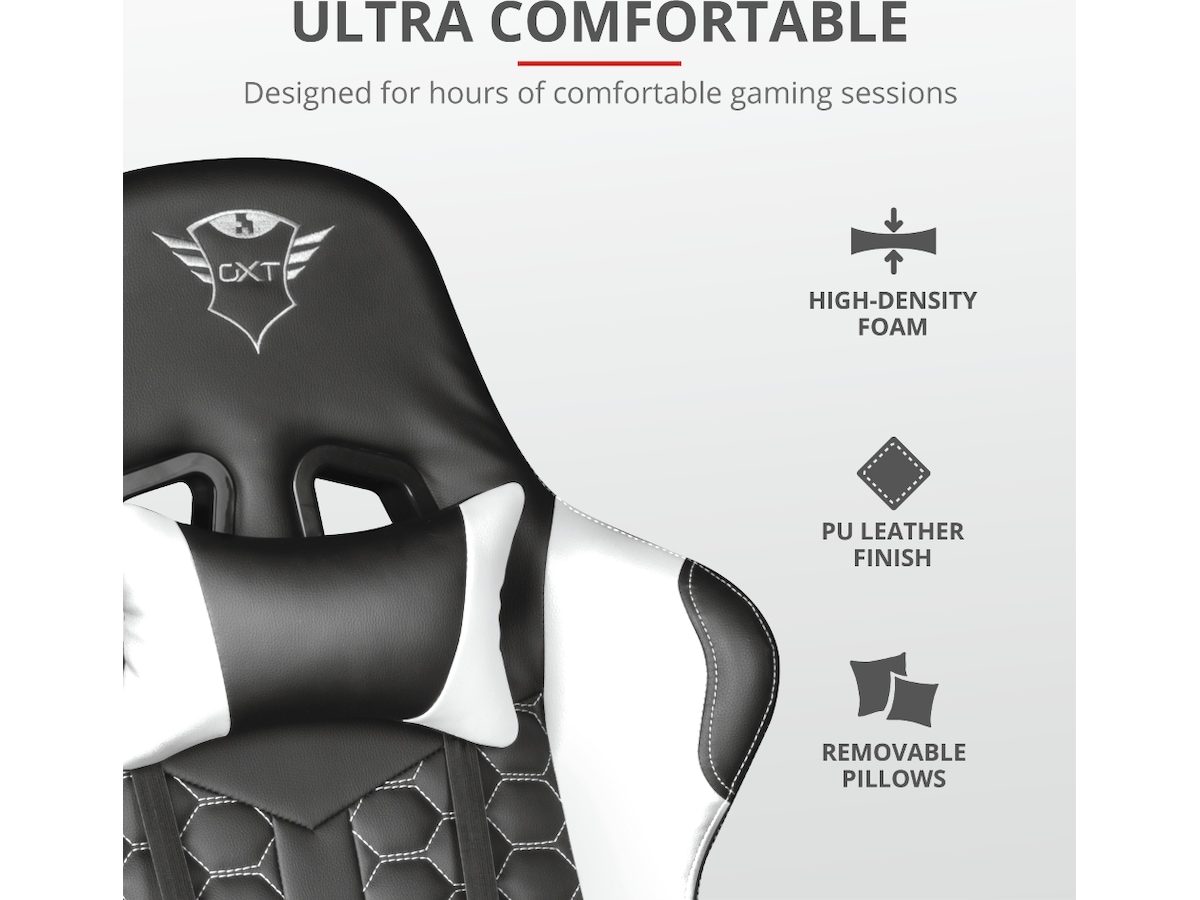 Resto spelstol levereras med två löstagbara och justerbara kuddar för att ge optimal komfort, så att du kan spela i timmar. Ländryggskudden ger ryggen stöd och extra avlastning. Nackkudden frigör spänning och fungerar även som nackstöd.