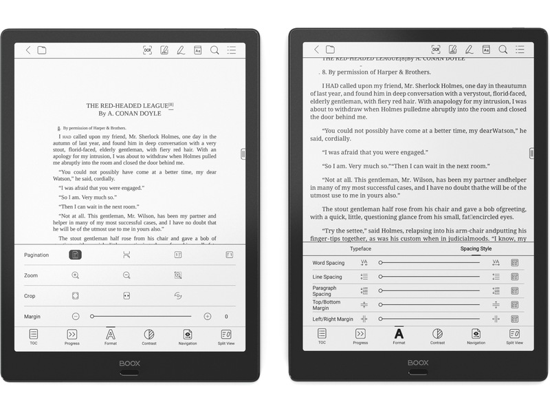 Med BOOX-programvaran kan du öppna många olika text- och bildformat. Under läsningen kan du ändra typsnitt och storlek på teckensnittet, sidornas placering, lägga till bokmärken och godtyckliga skaldokument.