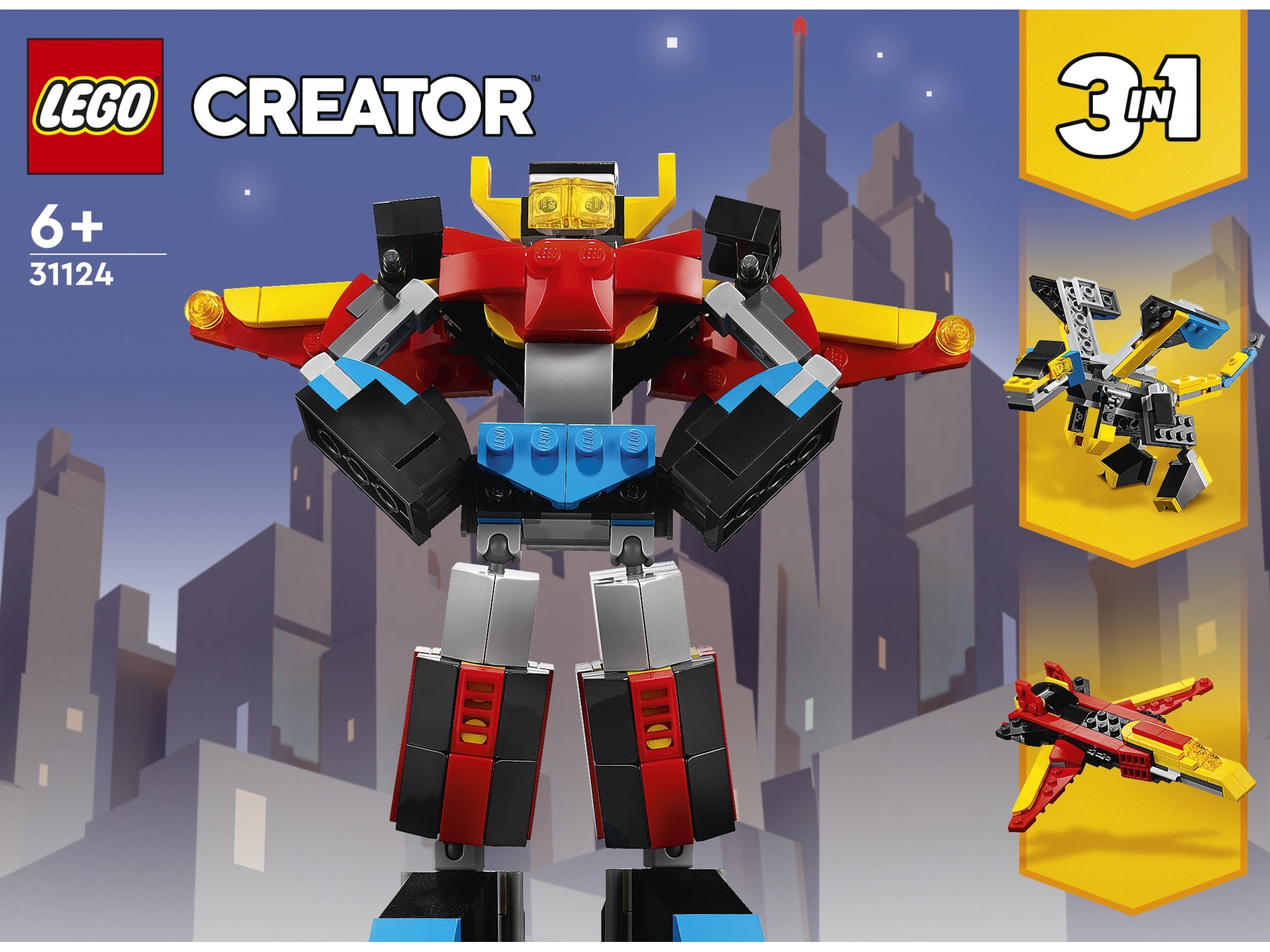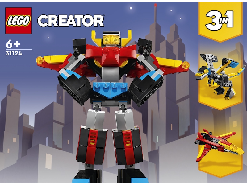 • 3-i-1-leksak – Byggsetet Superrobot (31124) låter barn njuta av fantasifull lek med 3 modeller i 1 set: en robot, en drake och ett jetplan