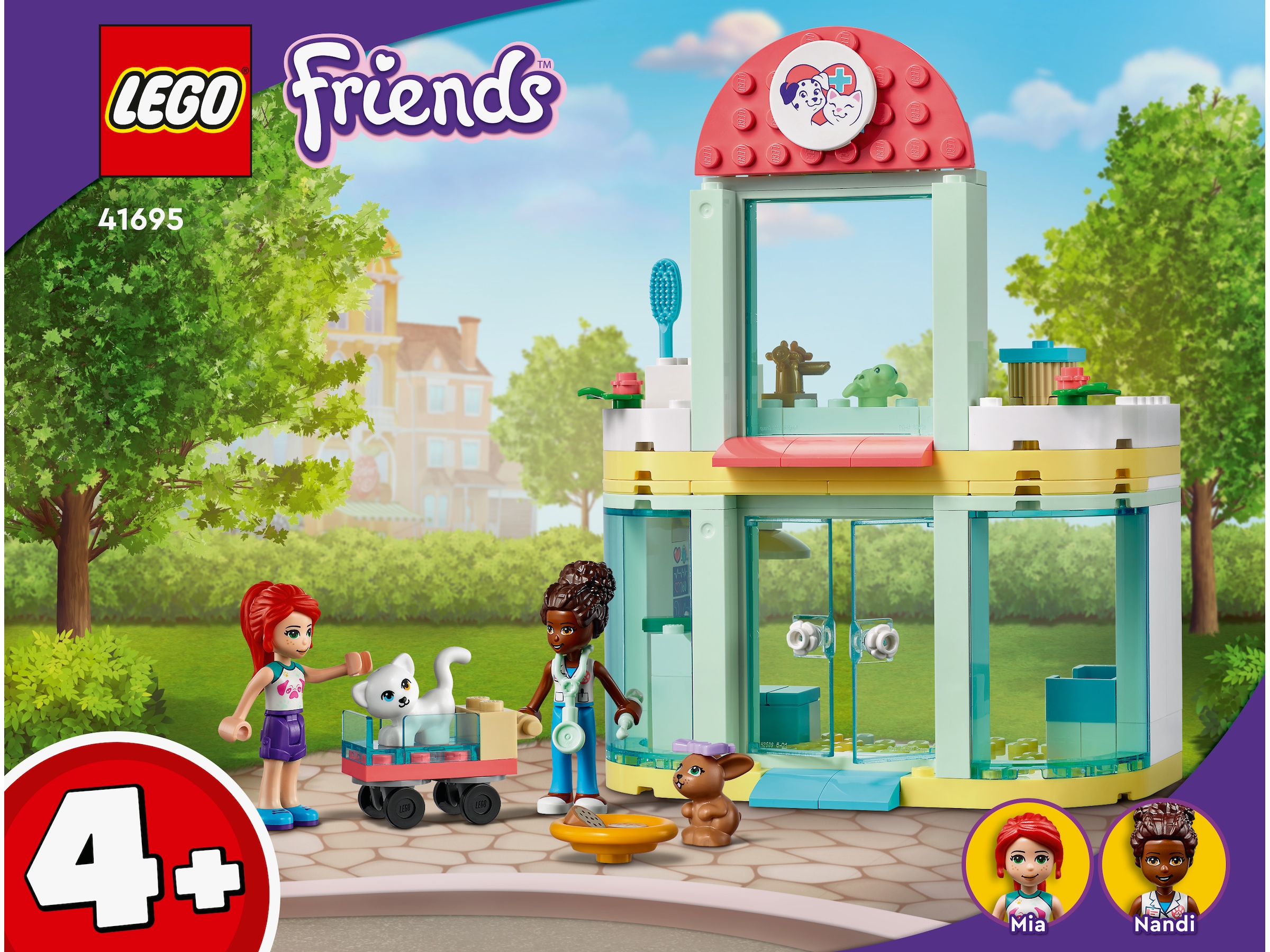- Massor av lekinspiration – Setet innehåller 2 minidockor, däribland LEGO® Friends Mia, en katt, en sköldpadda och en kanin, plus massor av tillbehör som inspirerar till djurvårdande veterinärlekar
