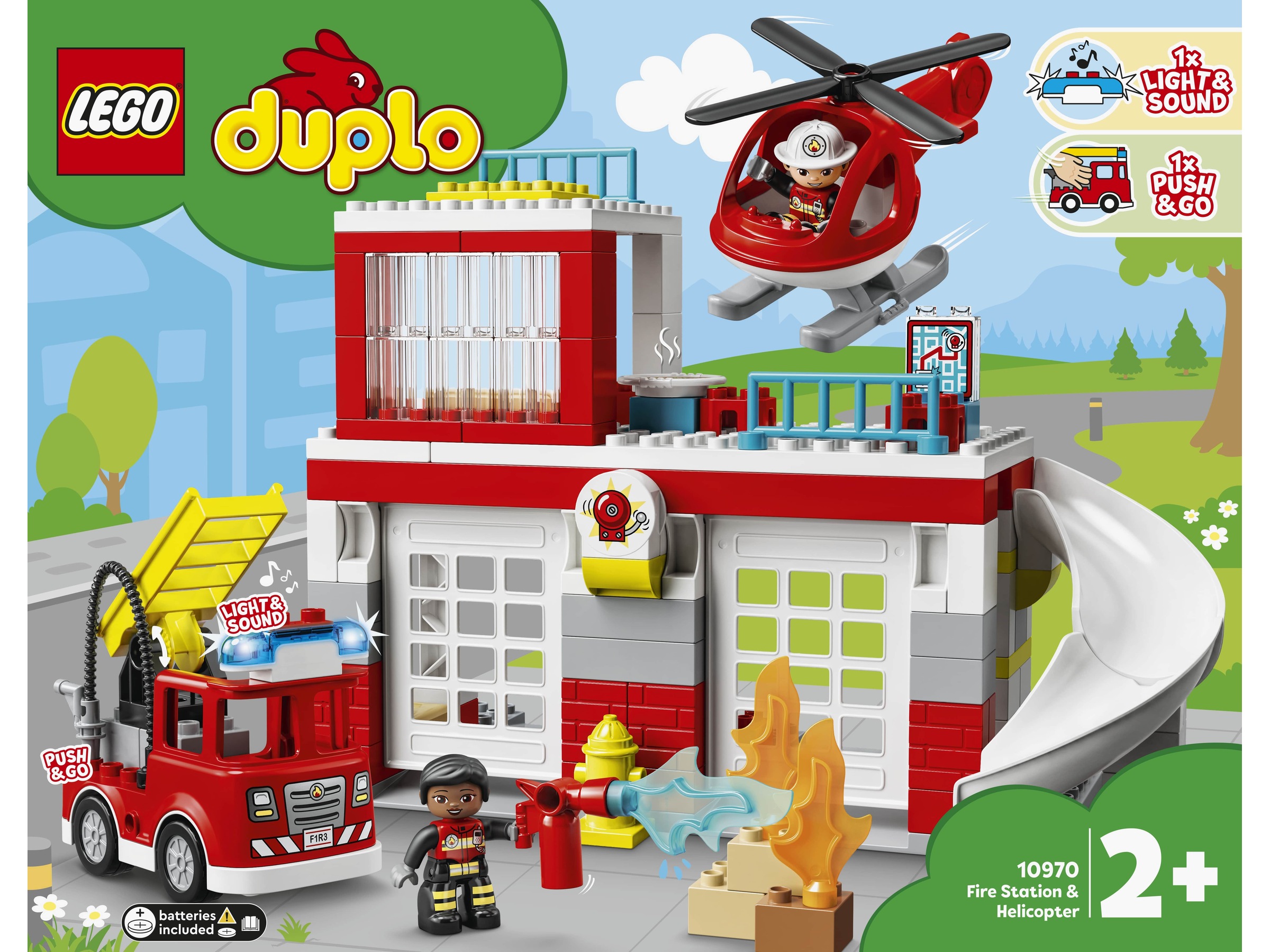 - Händelserik brandstation – LEGO® DUPLO® Rescue Brandstation & helikopter (10970) innehåller massor av vänliga karaktärer, roliga aktiviteter och möjligheter till utvecklande rollekar
