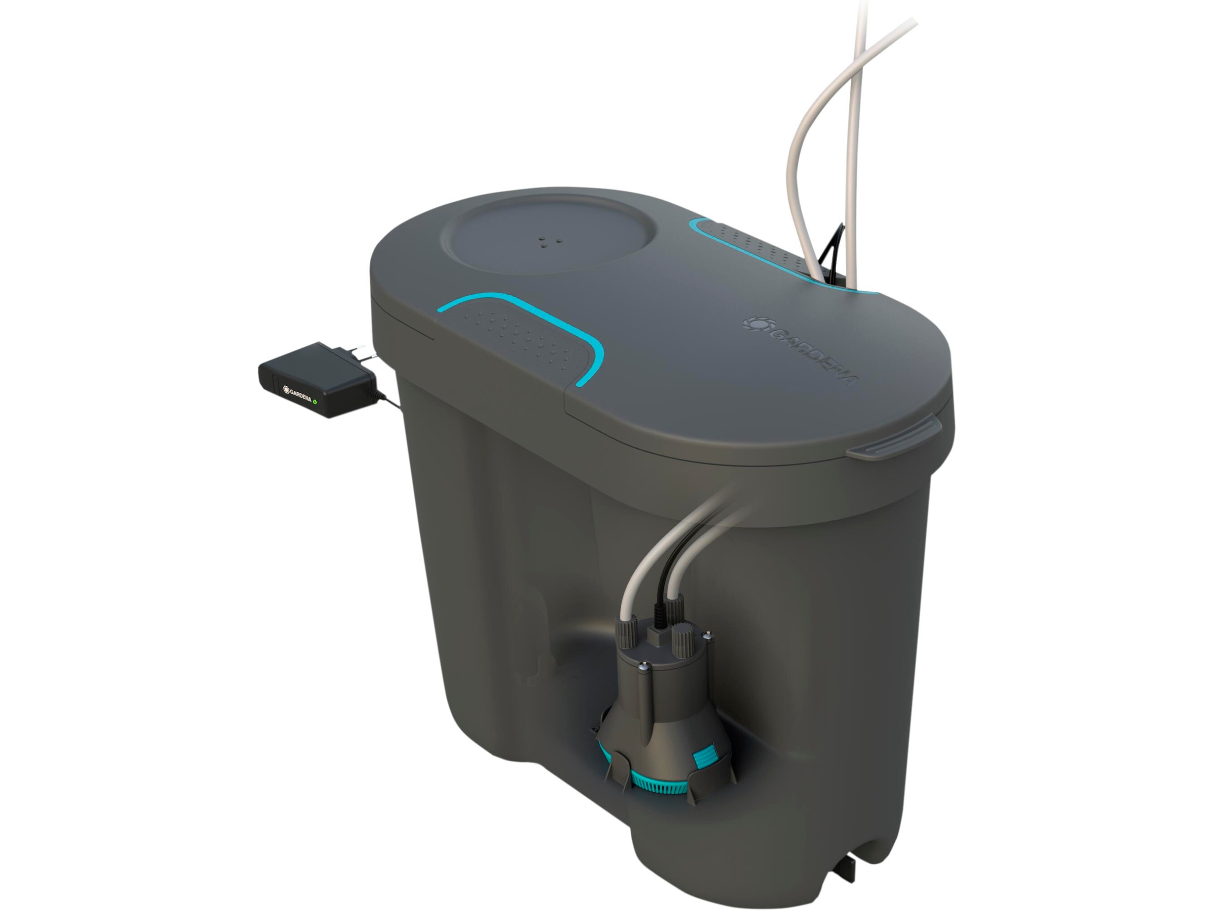 Den tillhörande vattentanken är gjord av upp till 80 % återvunnet material. Fästfunktionen på vattentanken säkerställer ett optimalt utnyttjande av vattnet. Tanken kan användas för förvaring, och flera vattentankar kan anslutas om en större volym vatten behövs.