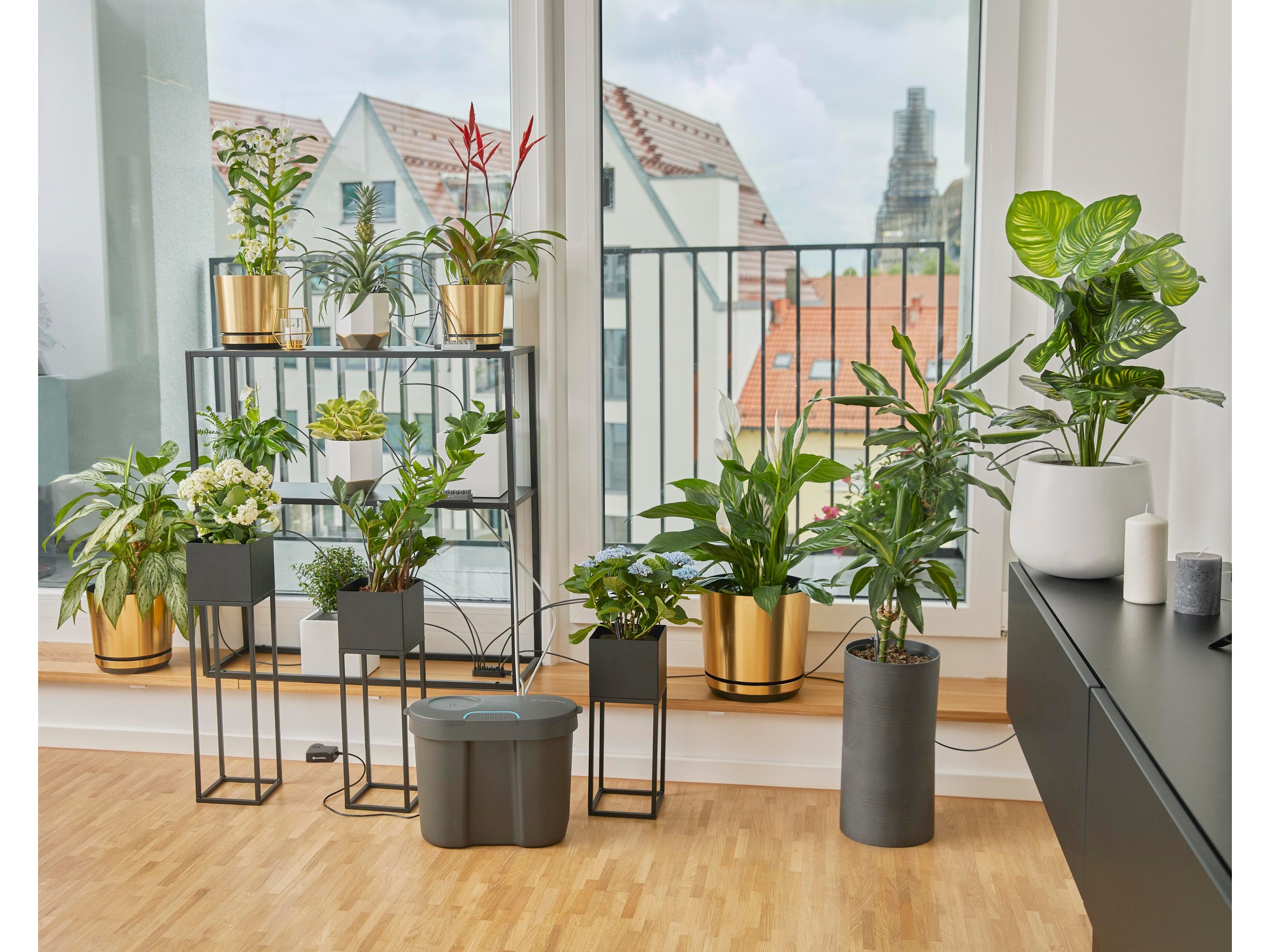 Tack vare den medföljande vattentanken på 10,5 liter, samt pumpen, som ingår i denna uppsättning, är det inte nödvändigt att ansluta systemet till en vattenkälla. Pumpen utnyttjar vattnet i tanken och vattnar krukväxterna automatiskt.