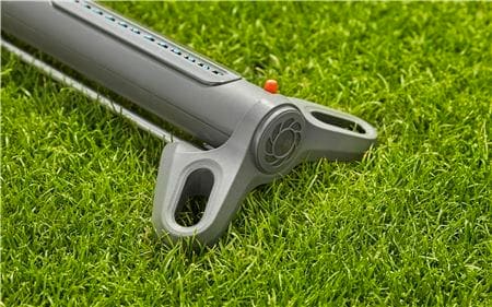 De extra breda stödfötterna och metallkomponenterna hjälper AquaZoom S att alltid stå bra på gräset.
