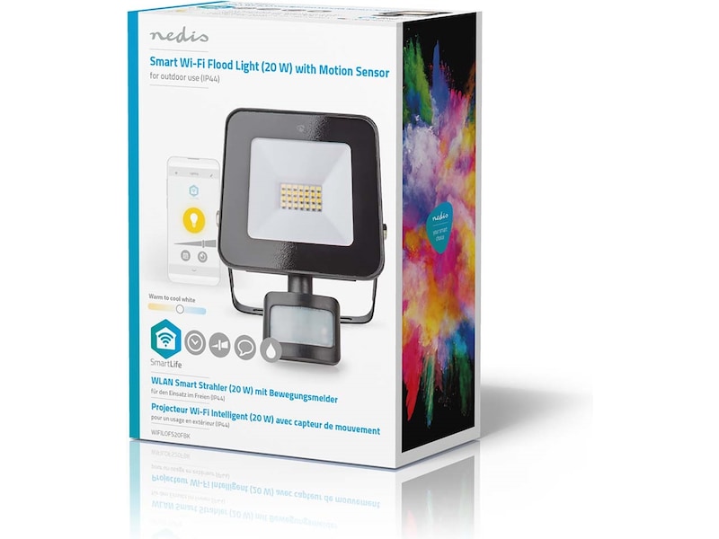 Anslut denna strålkastare till Nedis SmartLife-appen och fjärrstyr den. Du kan bestämma ljusintensiteten och färgen från kallvitt till varmvitt och ställa in timers och scenarier för optimal komfort. Dessutom kan du använda röststyrning i kombination med Amazon Alexa eller Google Home.