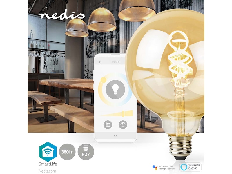 • Kombinera modern teknik med den klassiska stilen av en dimbar filament • Klar att ansluta: ansluter direkt till Wi-Fi • Styr lampans ljusstyrka - 1800–6500K (sval till varmvit) • Använd Nedis® SmartLife-appen för att ställa in tidsinställningar för att slå på/stänga av den automatiskt • Stöder fjärrkontroll - låter dig styra flera glödlampor samtidigt • Stöder röststyrning via Google Home och Amazon Alexa • Kan användas som en fristående produkt eller enkelt kopplas till andra Nedis® SmartLife-produkter