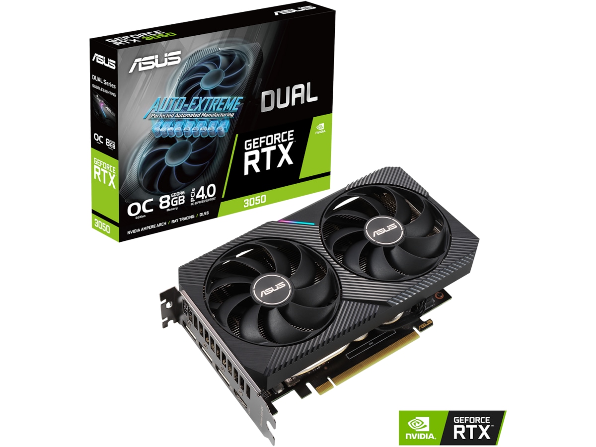 ASUS Dual GeForce RTX™ 3050 kombinerar dynamisk termisk prestanda med bred kompatibilitet tack vare den senaste NVIDIA® Ampere-arkitekturen. Avancerade kyllösningar hämtade från grafikkort av toppklass – inklusive två Axial-tech-fläktar för att maximera luftflödet till kylflänsen – är monterade i det 20 cm långa 2-slot-kortet, vilket ger mer kraft på mindre plats. Dessa förbättringar gör ASUS Dual till det perfekta valet för spelare som vill ha tung grafikprestanda i ett kompakt bygge.
