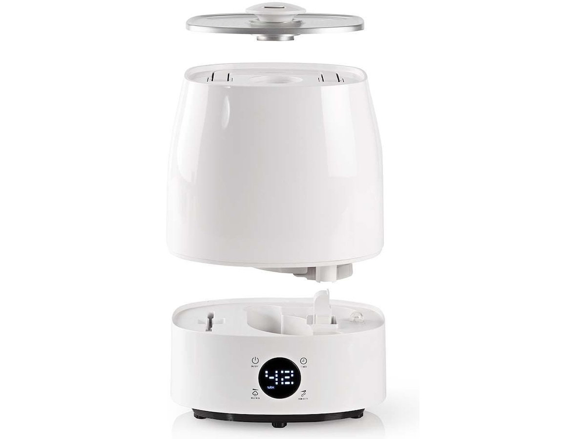 En LED-skärm visar den exakta luftfuktigheten i rummet och kan användas för att programmera de inställningar du föredrar. Med en 12-timmars tidskontroll kan du ställa in luftfuktaren så att den stängs av automatiskt efter en vald tidsperiod.