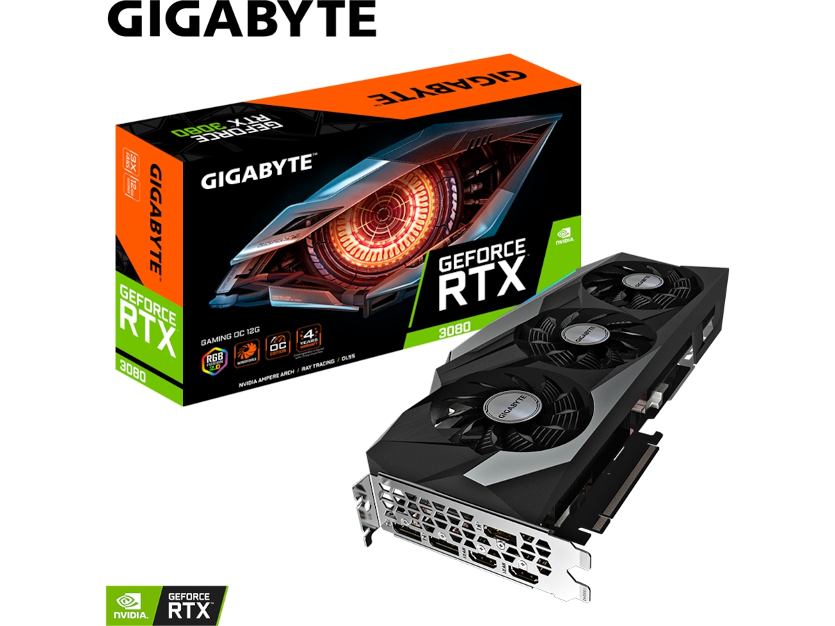 NVIDIA Ampere GPU-teknik, GIGABYTE WindForce 3x, RGB Fusion 2.0, 2nd gen Ray Tracing Cores, Dual Bios, AORUS Graphics Engine, Bakre metalplåt, 3rd gen Tensor Cores, Gigabyte Alternate Spinning |