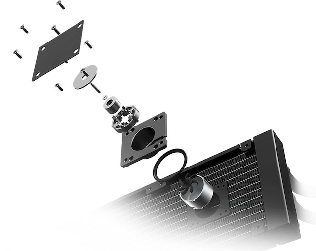 - The pump has been integrated into the radiator for sound dampening and noise reduction.