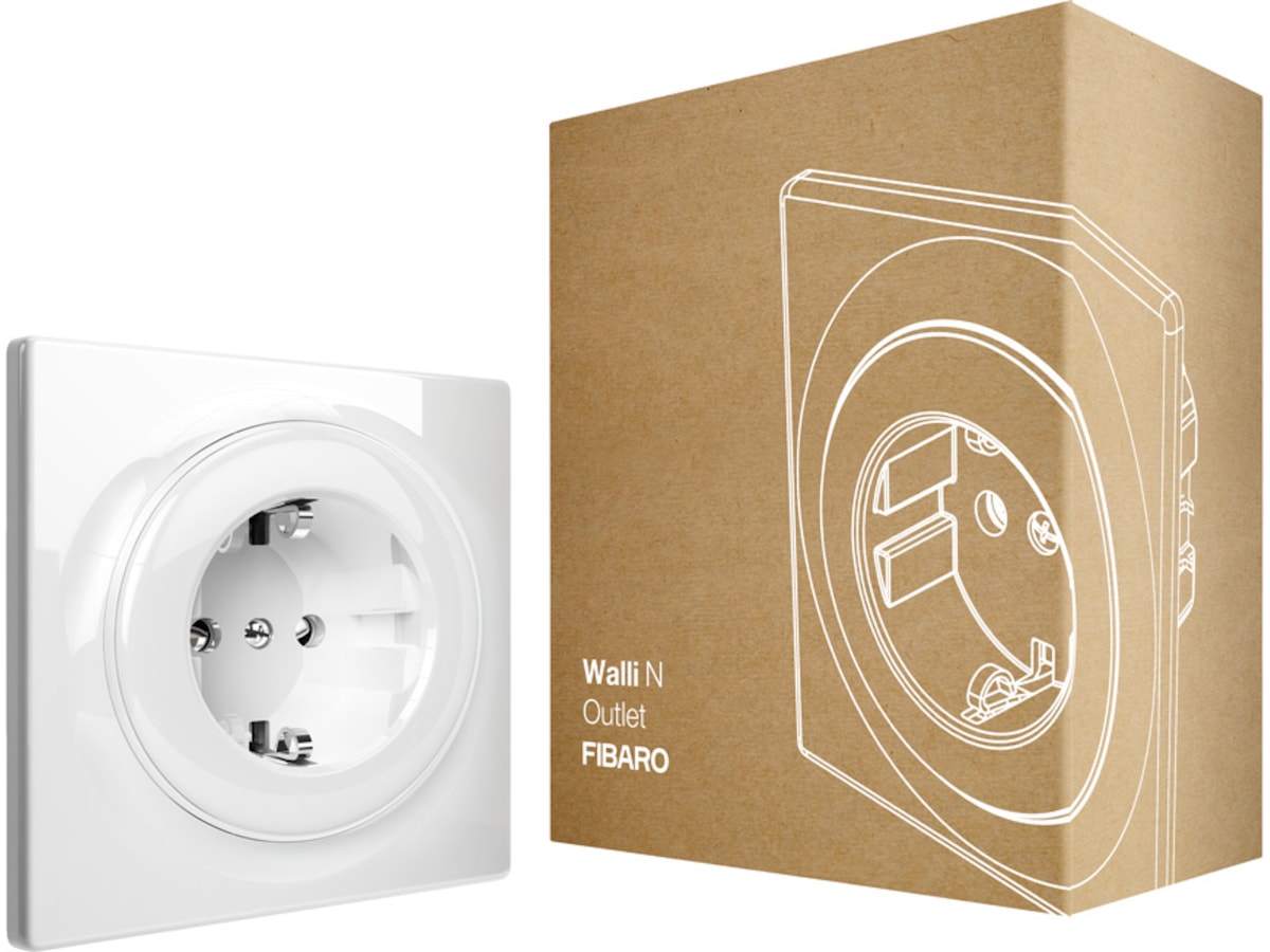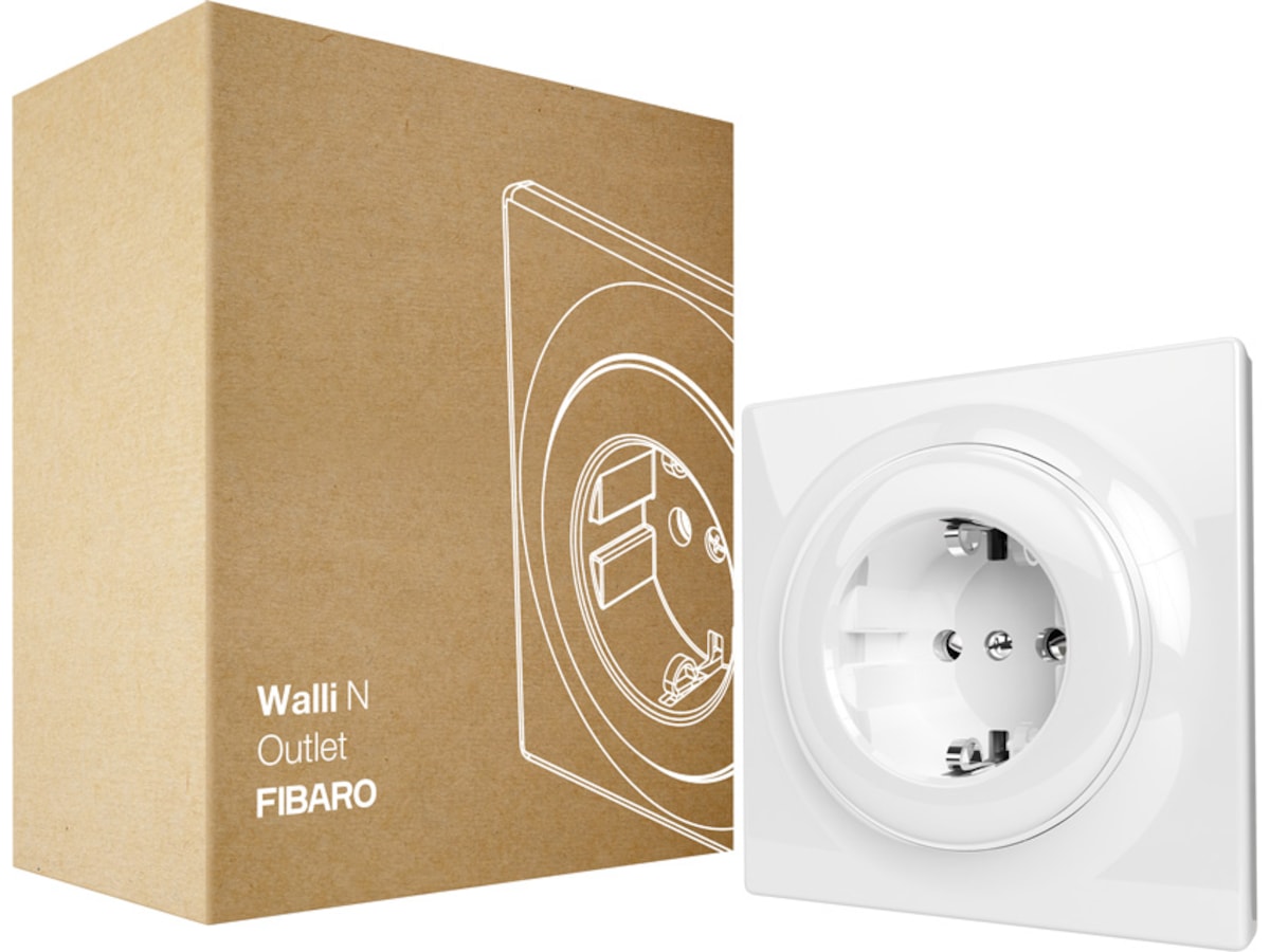 Fibaro Walli Outlet N typ F Fibaro Non-Smart Outlet utan intelligensfunktioner. Anordningen är utformad för att upprätthålla en enhetlig utformning av uttagen.