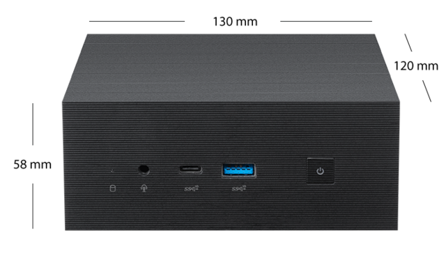 Med en modern design med snygga linjer och en snygg, borstad finish smälter ASUS Mini PC PN63-S1 enkelt in i hem-, kontors- och butiksmiljöer. Kompakt och lätt på 120 mm x 130 mm x 58 mm med en volym på 0,9 liter, den kan placeras nästan var som helst och till och med fästas på baksidan av en bildskärm med ett VESA-fäste för en platsbesparande, allt-i-ett-lösning.