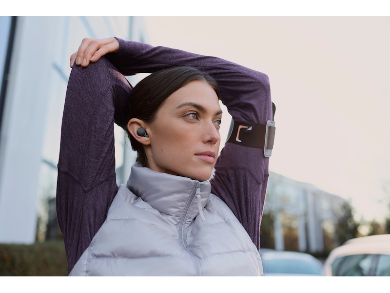 Adaptiv volymkontroll är en smart funktion som automatiskt optimerar volymen baserat på var du befinner dig. Njut av lägre volym på tysta platser och högre volym i bullrigare miljöer med dina trådlösa in-ear-hörlurar.