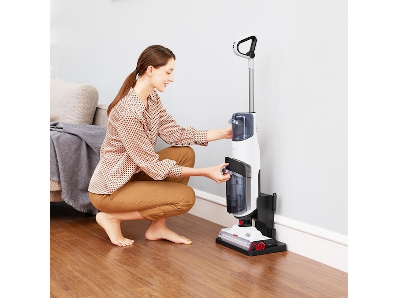 Rengör hela ditt golv på djupet, med upp till 280 kvm (3000) kvm maximal rengöringsräckvidd på en enda laddning3. Badrumsgolvet genomblött efter en dusch? Du kan torka upp det också. Genom att använda ett särskilt läge för golvtorkning.