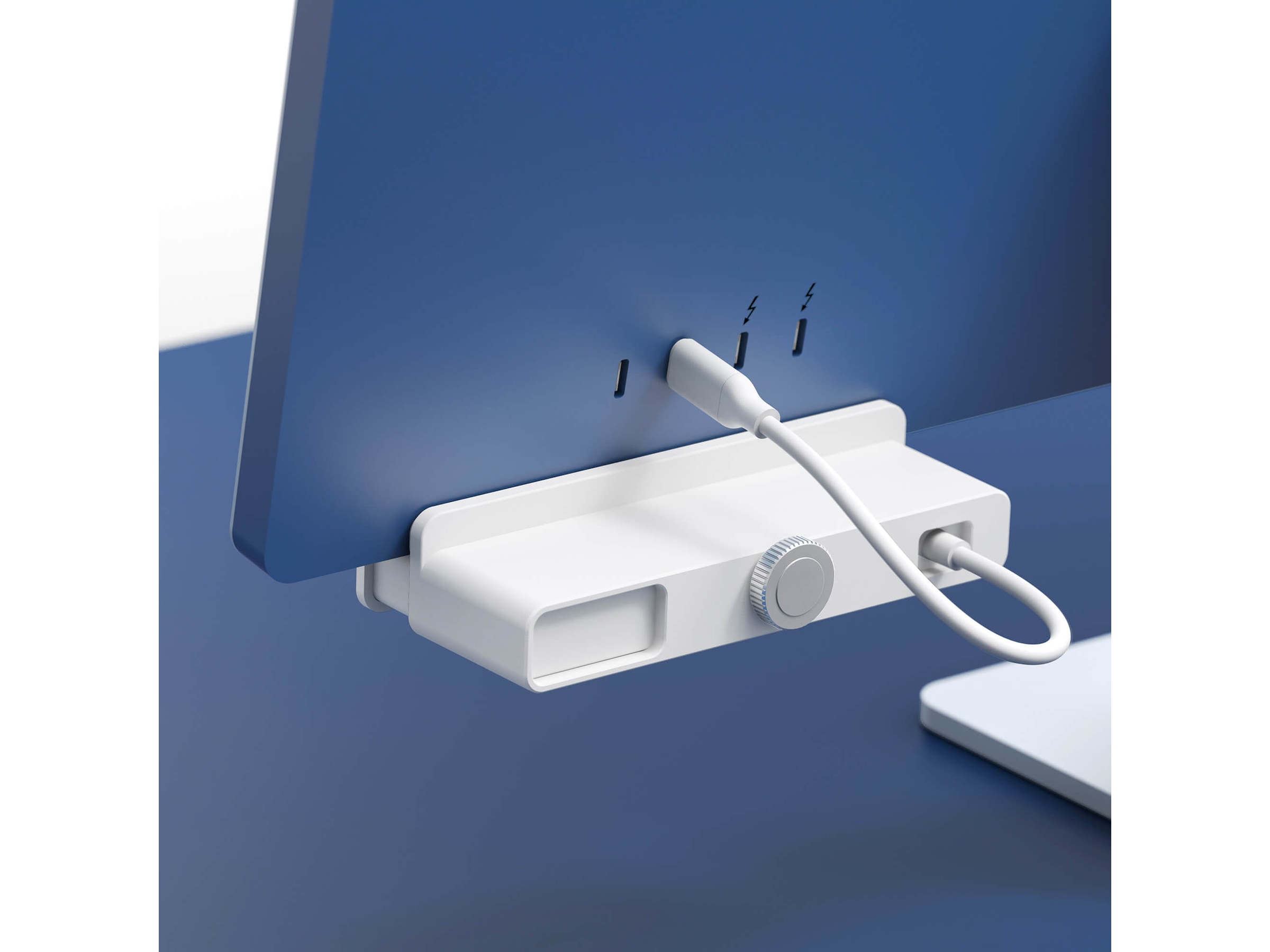 Utöka din iMac 24-tums lagringskapacitet med vår lättinstallerade klämdesignade USB-C-hub för iMac som sömlöst smälter in med färgmatchande ramar designade för alla iMac-färgalternativ.