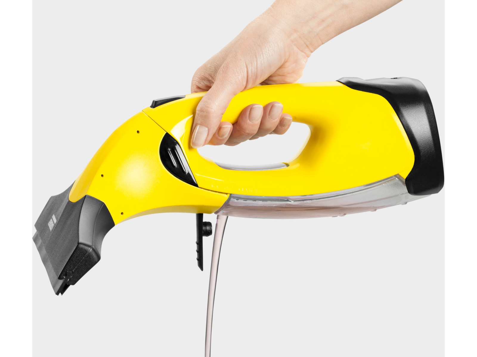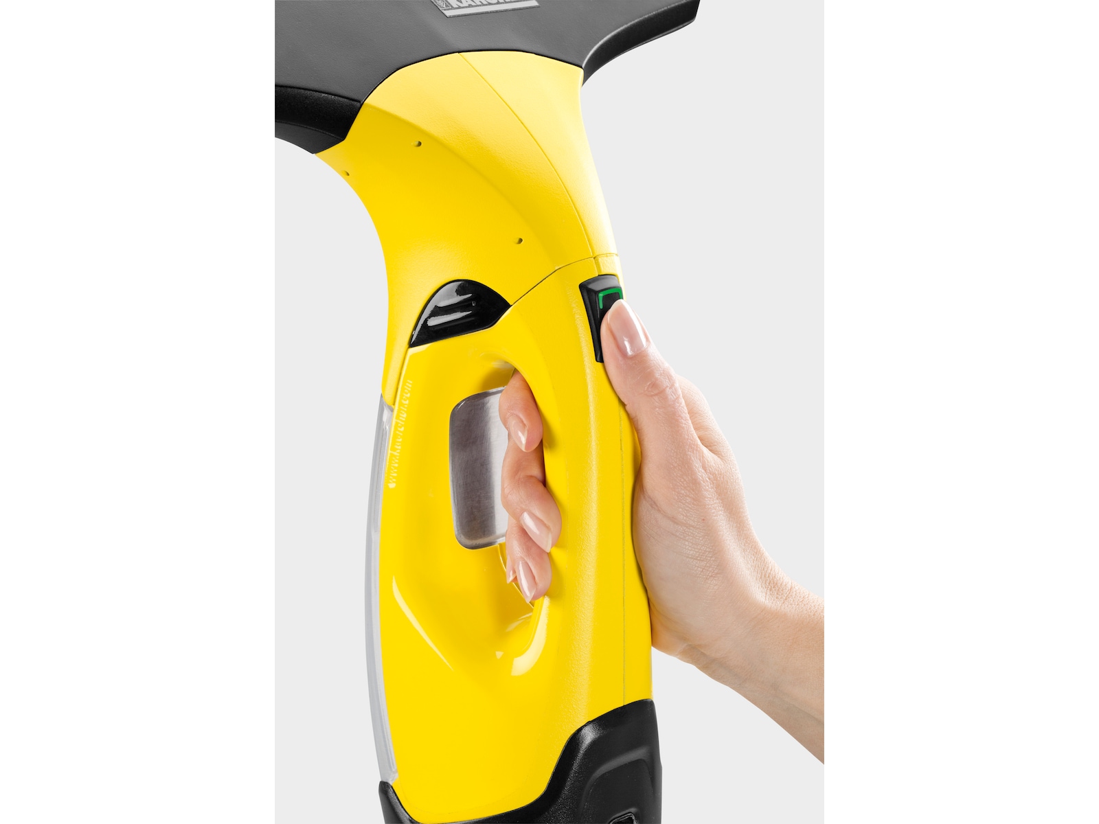 Kärchers praktiska och ergonomiska batteridrivna fönstertvätt gör fönsterputsningen dessutom mycket hygienisk, eftersom du aldrig behöver vidröra smutsvattnet. Tack vare det medföljande smala sugmunstycket kan även små eller svåråtkomliga ytor, som exempelvis fönster med små glasrutor eller vitrinskåp, tvättas utan ansträngning.