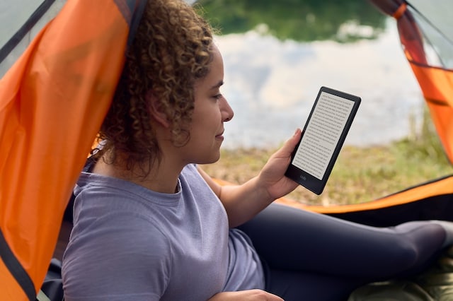 - Skärm: Amazons 6,8” Paperwhite-displayteknik med inbyggt ljus, 300 ppi, optimerad frontteknik, 16-nivås gråskala.