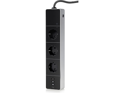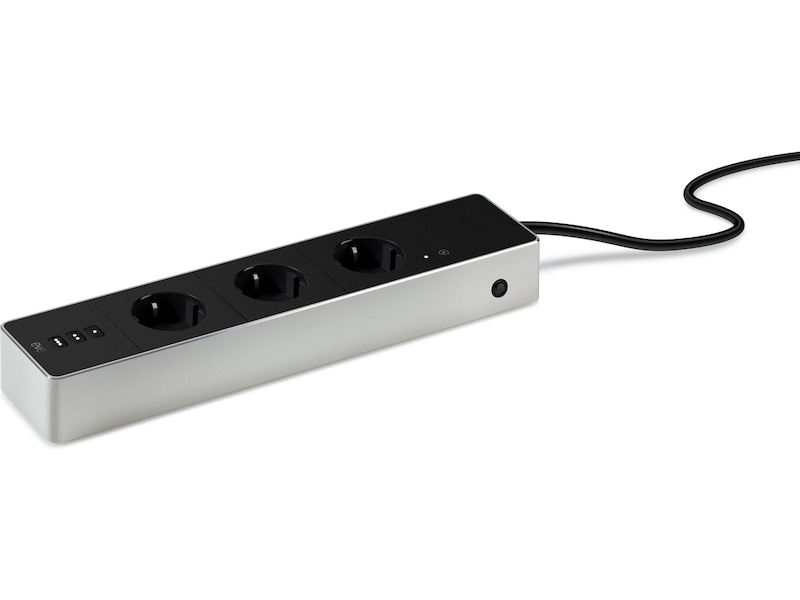 Med ett mattsvart chassi omslutet av en stenhård aluminiumram. Komplett med en hållbar 190 cm/6,3 fot kabel. Generöst fördelade 90-graders uttag. Och manuella kontroller av vita LED-strömstatusindikatorer. Eve Energy Strip är byggd för att imponera och passar sömlöst in i ditt anslutna ekosystem.