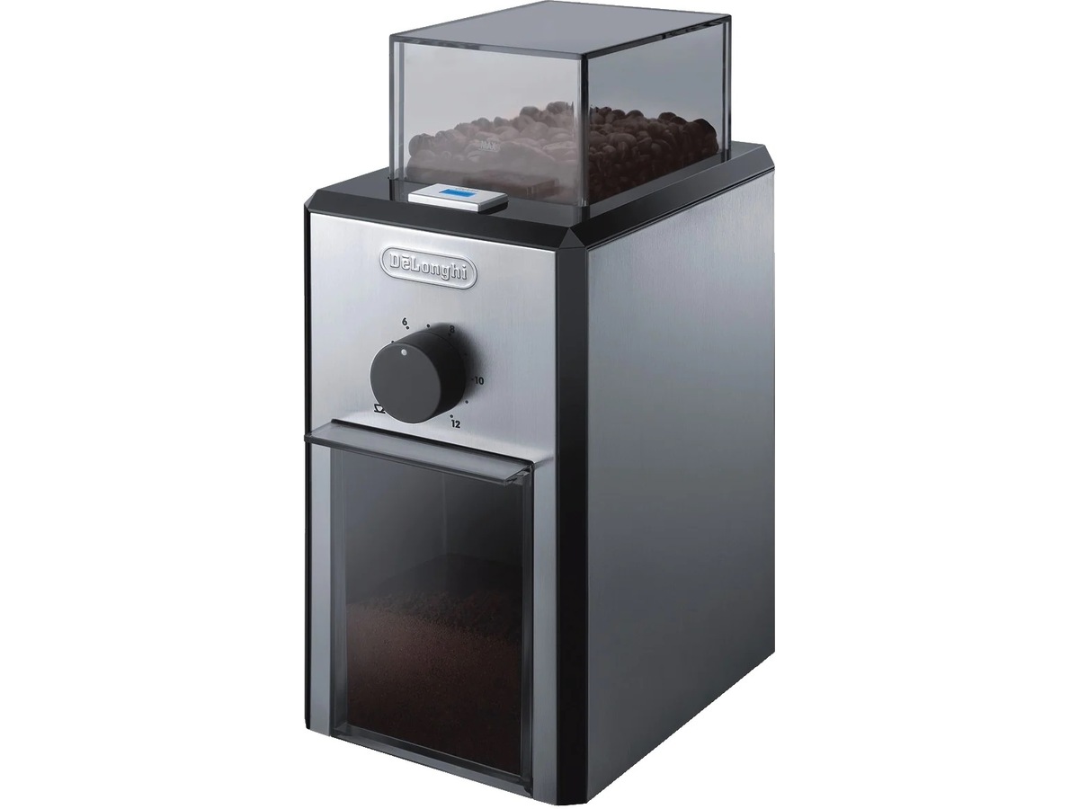 Delonghi KG89 Kvarn 16 malningsinställningar Upp till 12 koppar Kvarn De 2 slipskivorna säkerställer noll överhettning och full arom bevaras. Den övre slipskivan är avtagbar för enkel rengöring.
