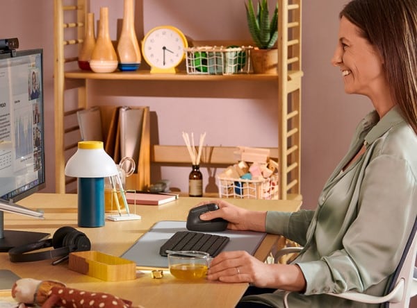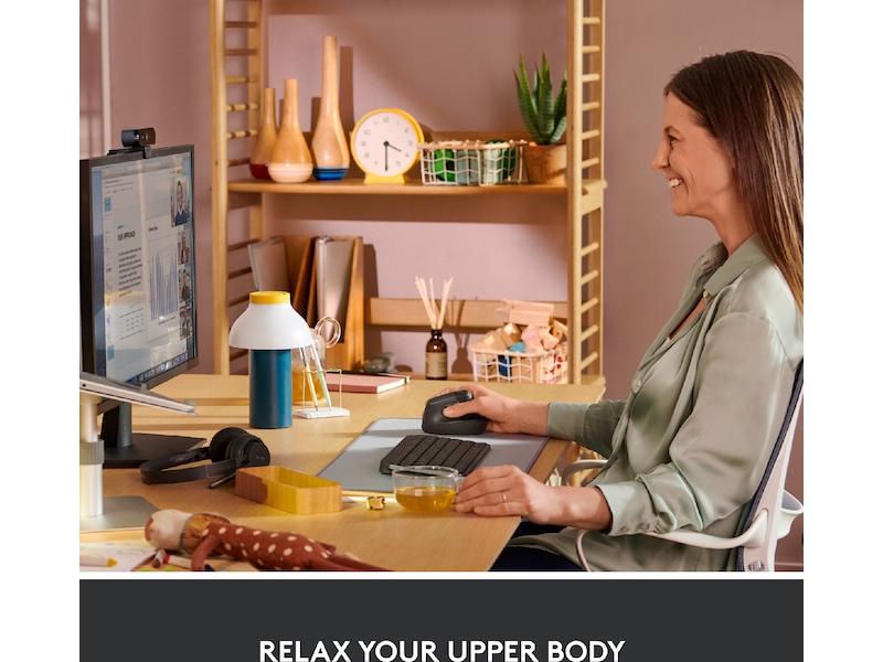 Lyft upp handen för omedelbar komfort med ett mjukt gummigrepp och bekvämt tumstöd. Få en mer naturlig position vid 57°. Och håll dig fokuserad från morgon till kväll med produktivitetsfunktioner som är skräddarsydda för din arbetsstil.
