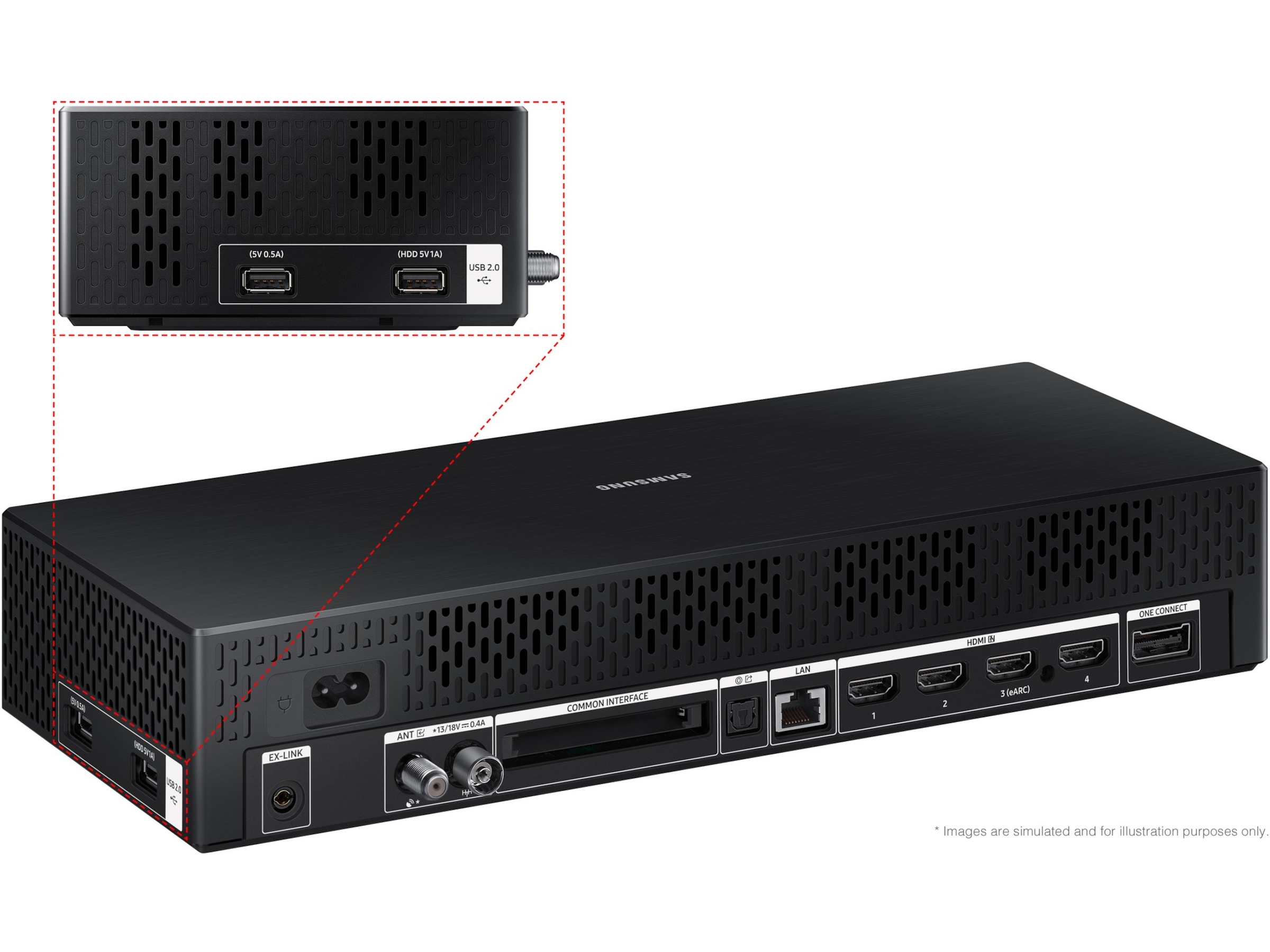 Nätverk, RS-232C, Digital ljudutgång (optisk), 4 x HDMI, 2 x USB, One Connect, USB