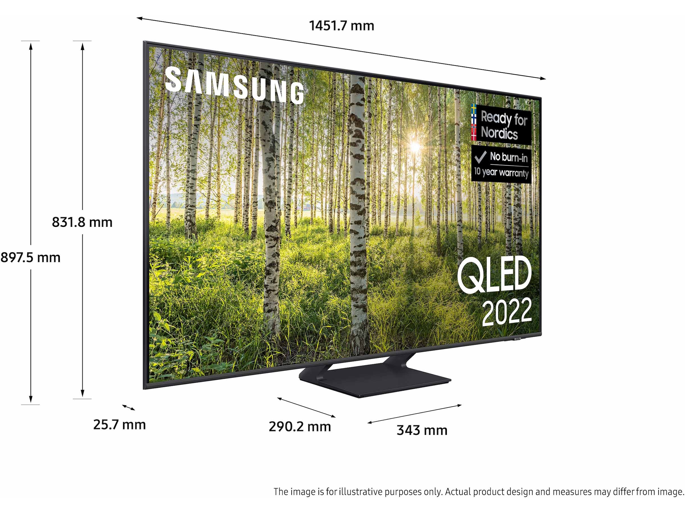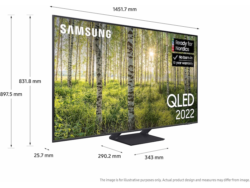 * När du köper 2022 QLED, Neo QLED eller Neo QLED 8K erbjuder Samsung 10-års skärminbrännings-garanti. Garantin gäller i 10 år från köpdatum. För att garantin ska gälla krävs en kopia av köpkvittot och registrering på Samsungs webbplats inom 90 dagar efter köpet. Gäller från 1 apr. 2022 - 31 aug 2023.